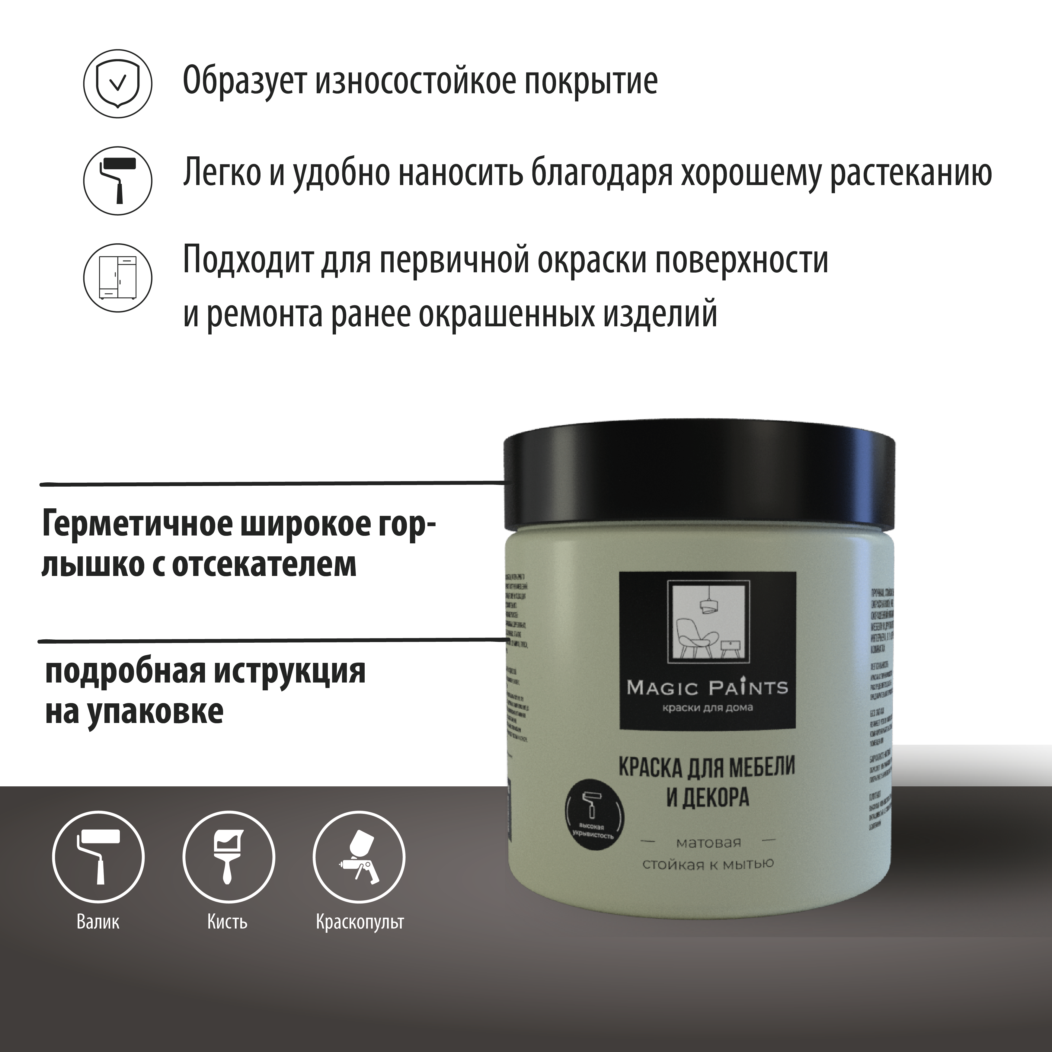Ниже Вы можете прочитать отзывы на Матовая краска для мебели и декора Magic Paints без запаха для стен потолков дерева кухни кухонных фасадов дверей стекла цвет Оливковый 0.65 кг, ознакомится с подробными характеристиками, посмотреть интересные обзоры и фотографии на Матовая краска для мебели и декора Magic Paints без запаха для стен потолков дерева кухни кухонных фасадов дверей стекла цвет Оливковый 0.65 кг.