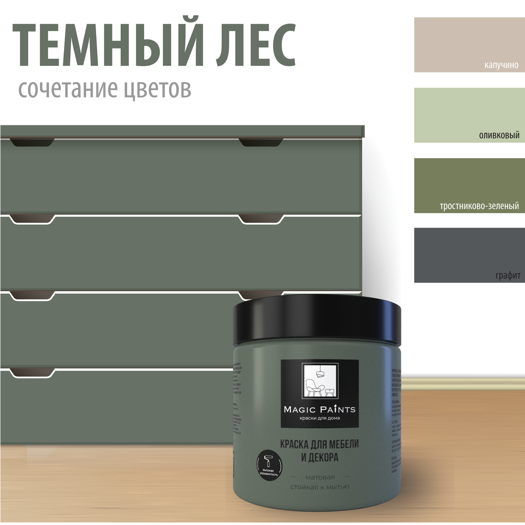 Купить Матовая краска для мебели и декора Magic Paints без запаха для стен потолков дерева кухни кухонных фасадов дверей стекла цвет Тёмный лес 0.65 кг