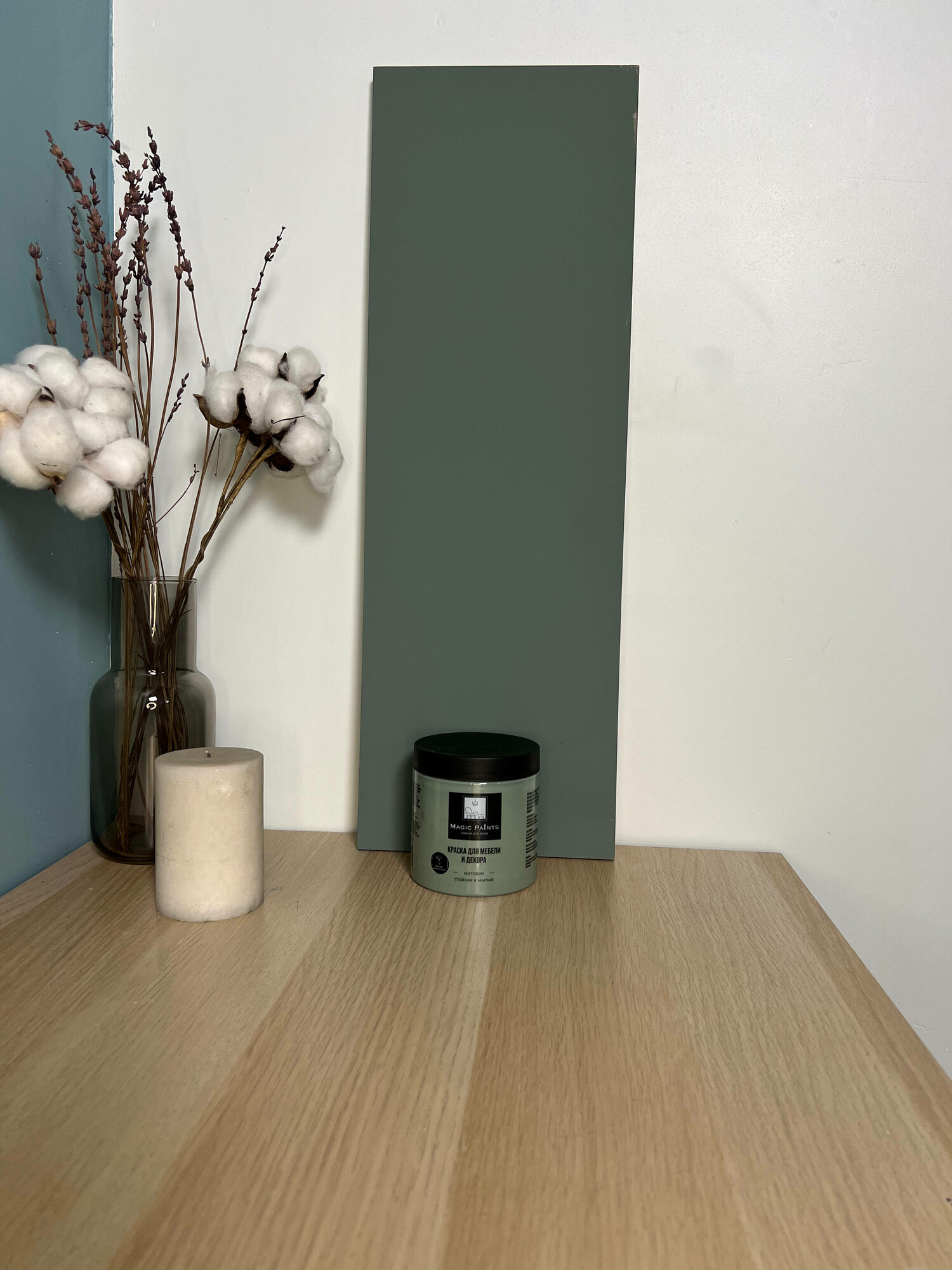 Матовая краска для мебели и декора Magic Paints без запаха для стен потолков дерева кухни кухонных фасадов дверей стекла цвет Тростниково - зеленый 0.65 кг