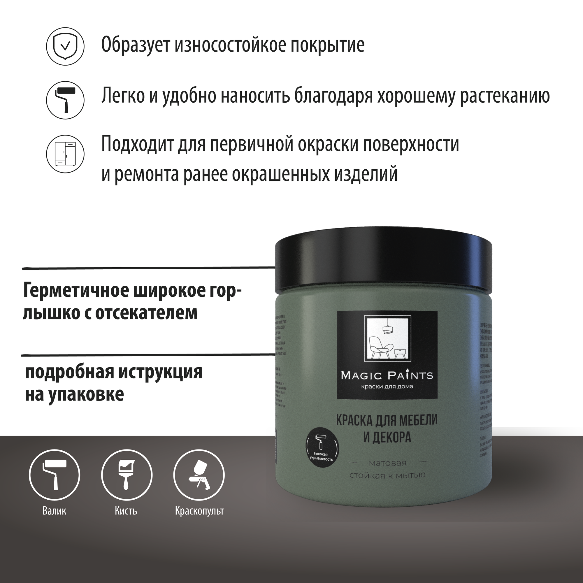 СохранитьМатовая краска для мебели и декора Magic Paints без запаха для стен потолков дерева кухни кухонных фасадов дверей стекла цвет Тёмный лес 0.65 кг интересное: