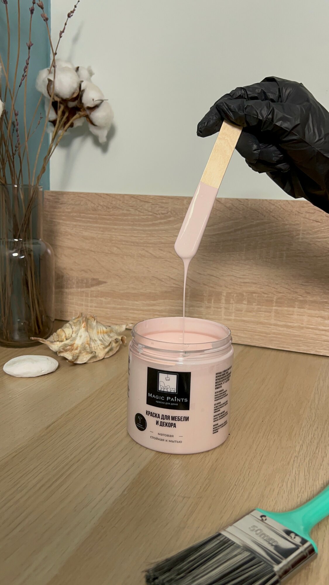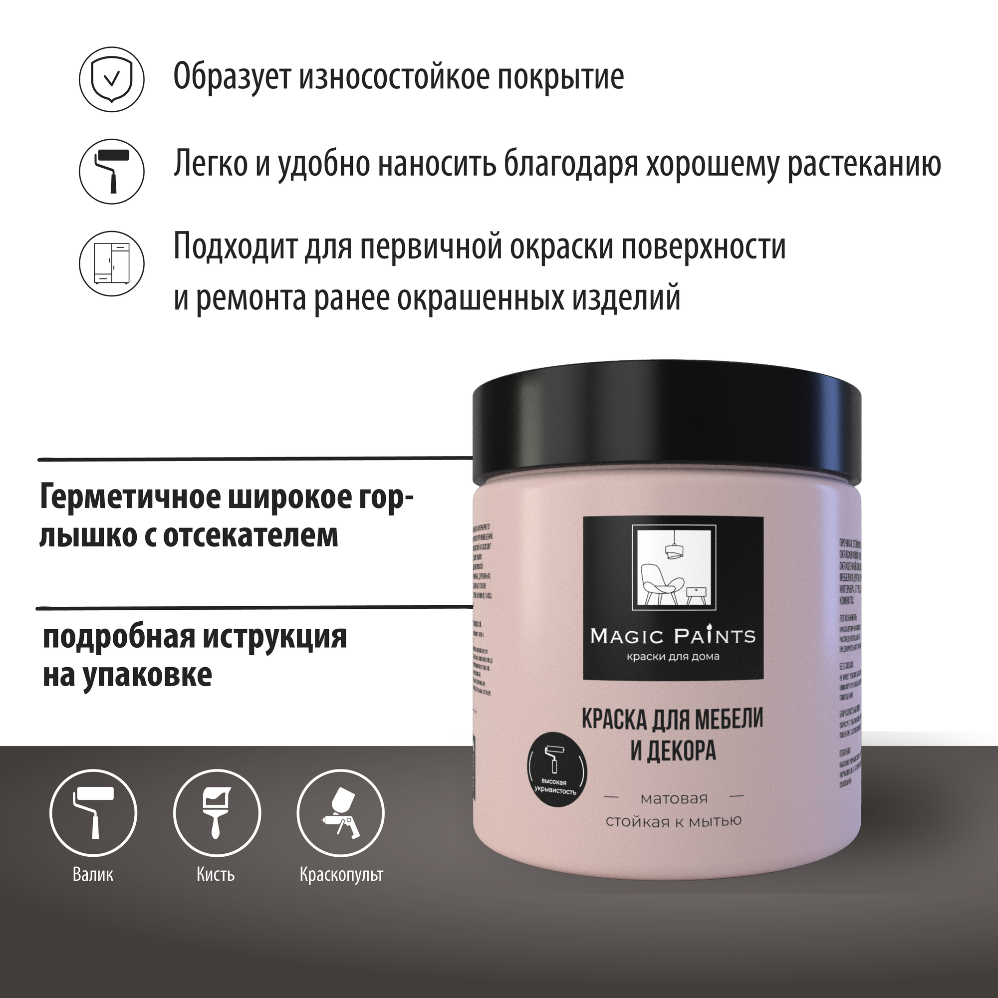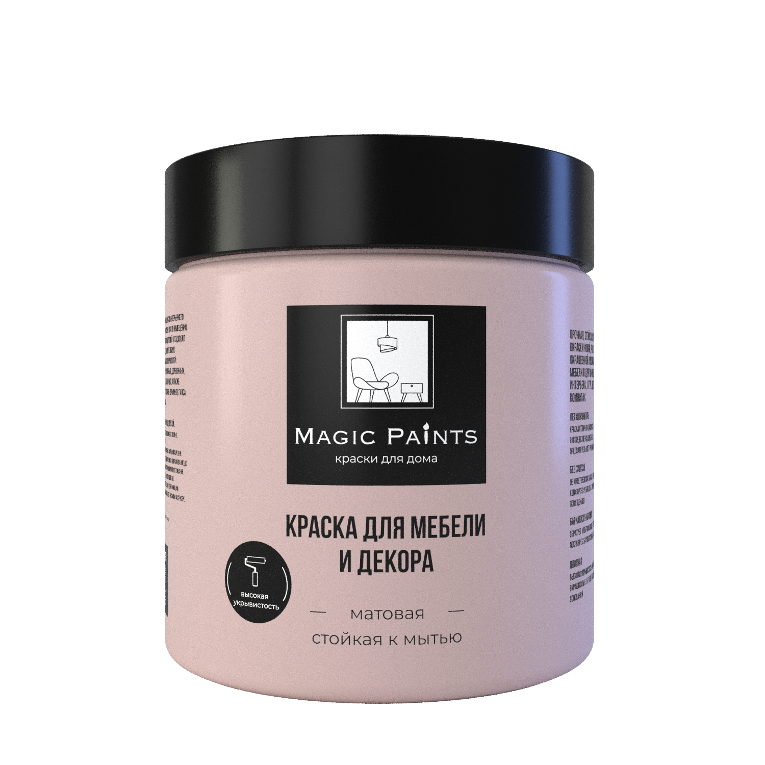 СохранитьМатовая краска для мебели и декора Magic Paints без запаха для стен потолков дерева кухни кухонных фасадов дверей стекла цвет Пыльно - розовый 0.65 кг интересное: