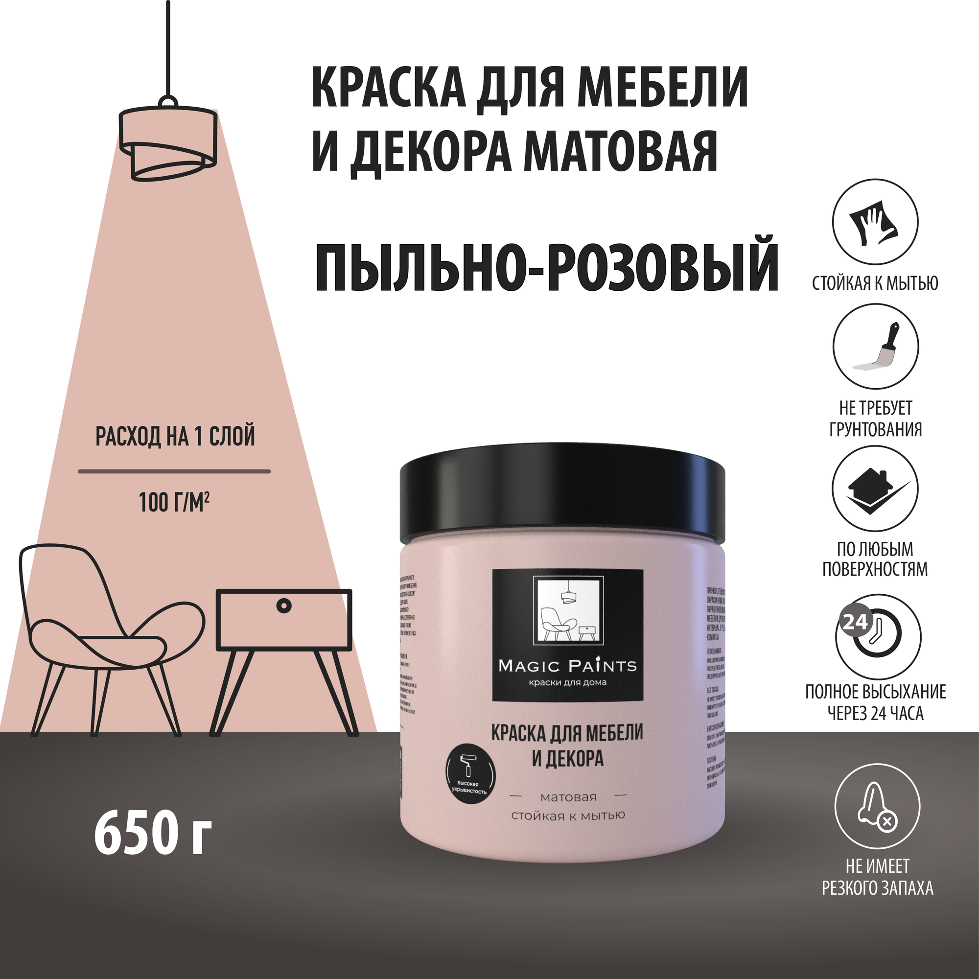 Купить Матовая краска для мебели и декора Magic Paints без запаха для стен потолков дерева кухни кухонных фасадов дверей стекла цвет Пыльно - розовый 0.65 кг
