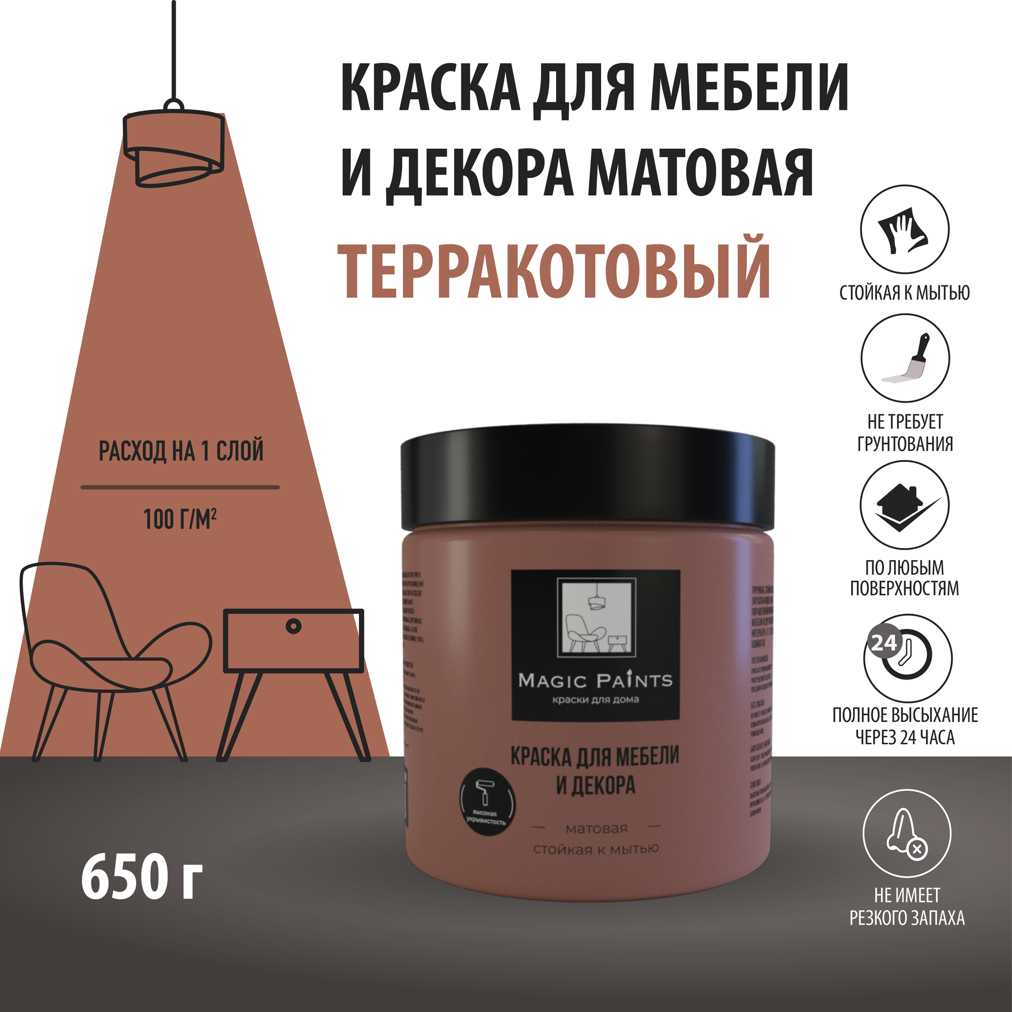 Купить Матовая краска для мебели и декора Magic Paints без запаха для стен потолков дерева кухни кухонных фасадов дверей стекла цвет Терракотовый 0.65 кг