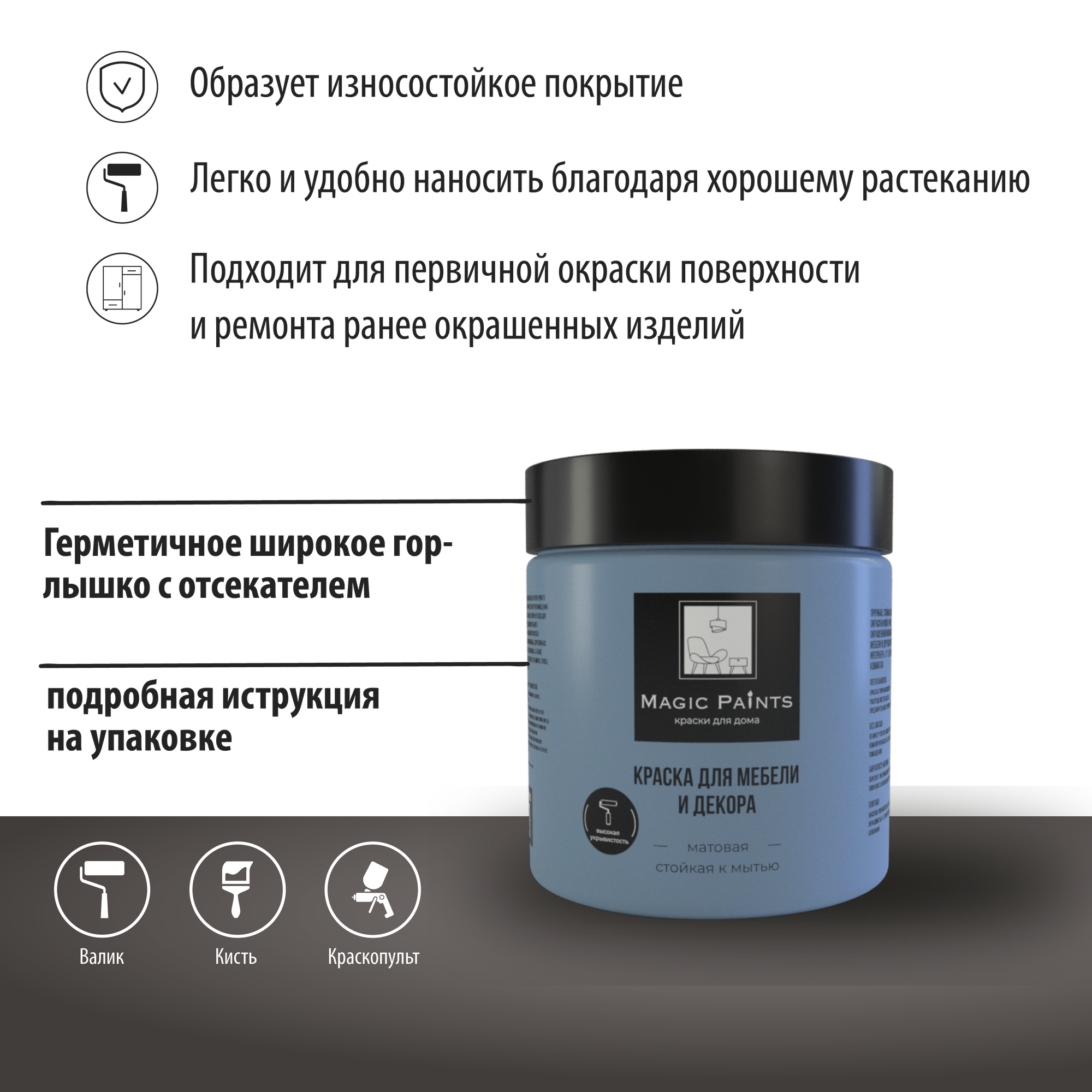 Матовая краска для мебели и декора Magic Paints без запаха для стен потолков дерева кухни кухонных фасадов дверей стекла цвет Серый лофт 0.65 кг