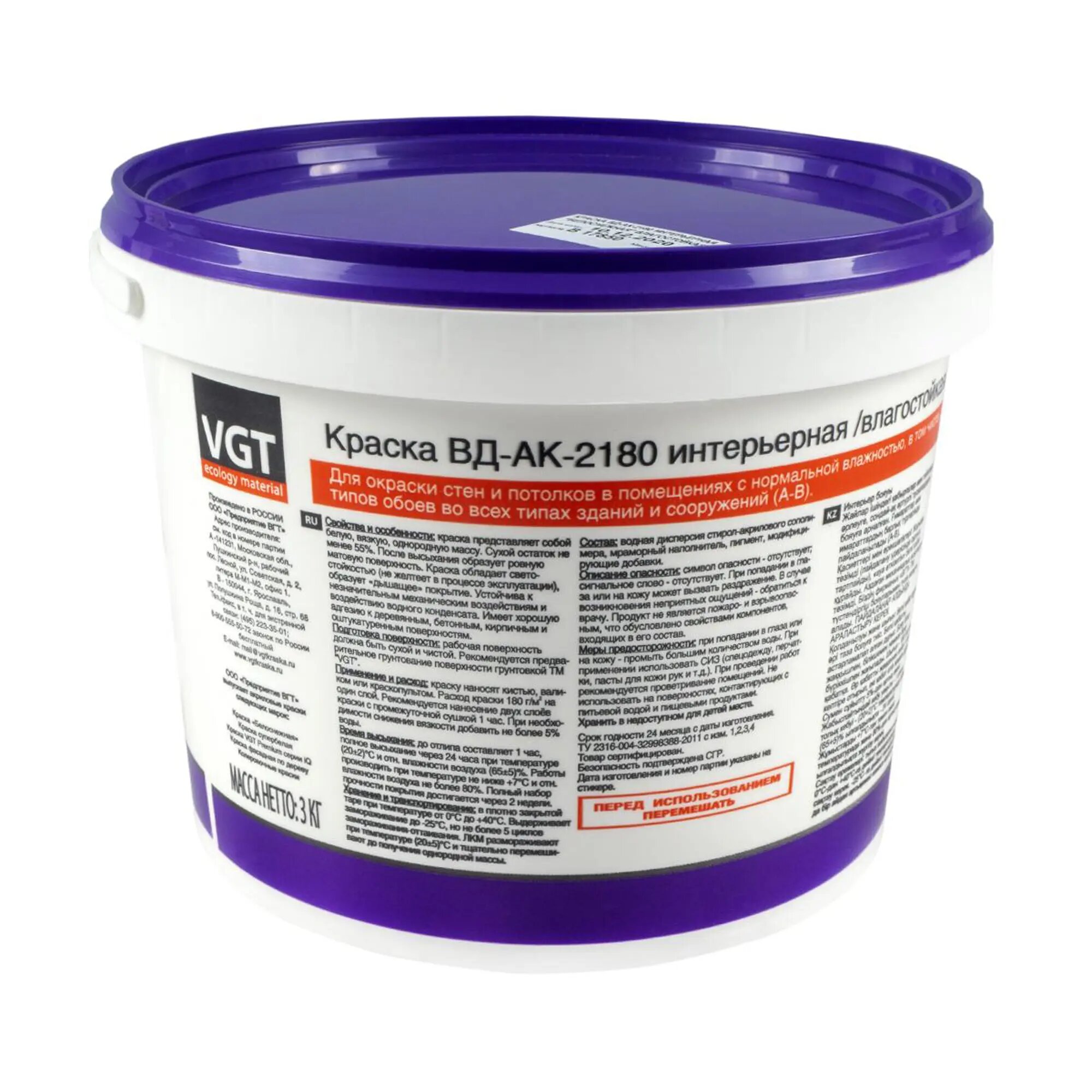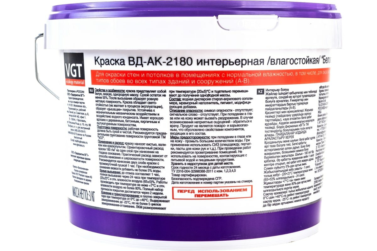 VGT ВД-АК-2180 краска интерьерная белоснежная для стен и потолков, влагостойкая, матовая (3кг) интересное:
