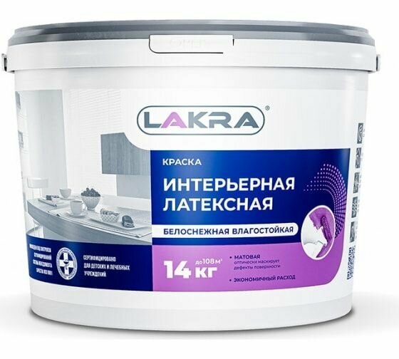 Краска интерьерная латексная влагостойкая Лакра белоснежная 14кг