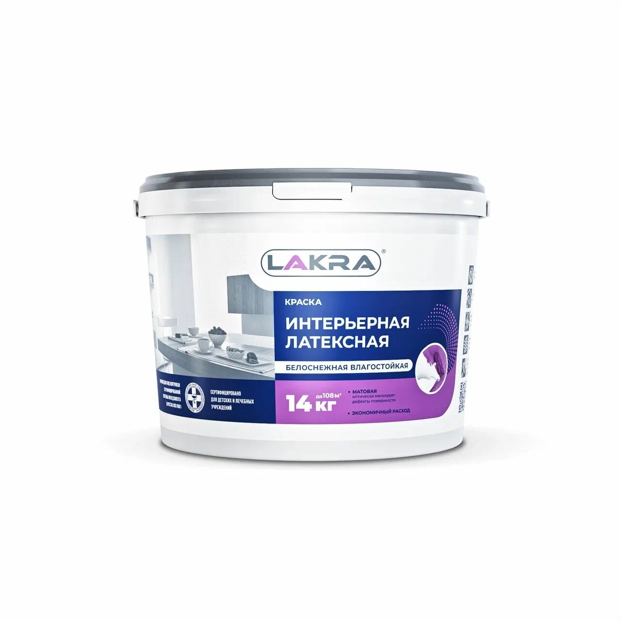 Краска интерьерная латексная влагостойкая Лакра белоснежная 14кг