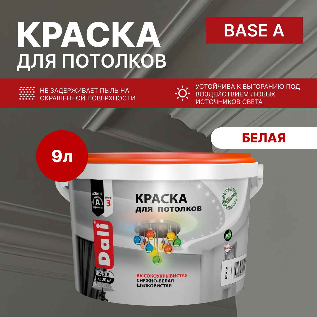 Купить Краска для потолков Dali 9 л супербелый глубокоматовая