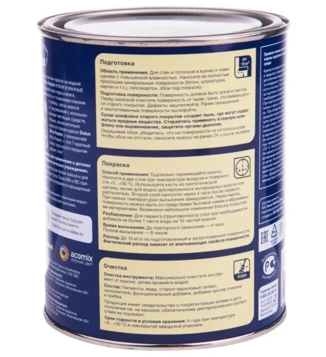 Краска для кухни и ванной Dulux ULTRA RESIST