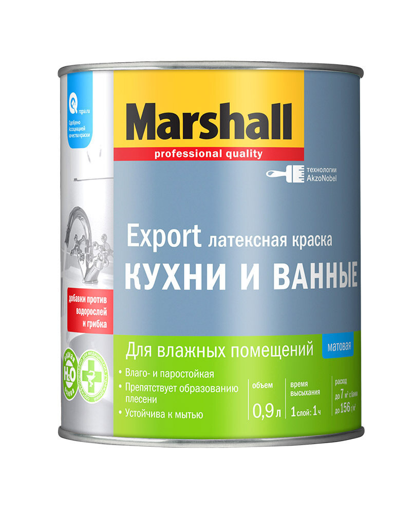 Краска Export Кухни и ванные Marshall 0,9 л База BW (белая) матовая