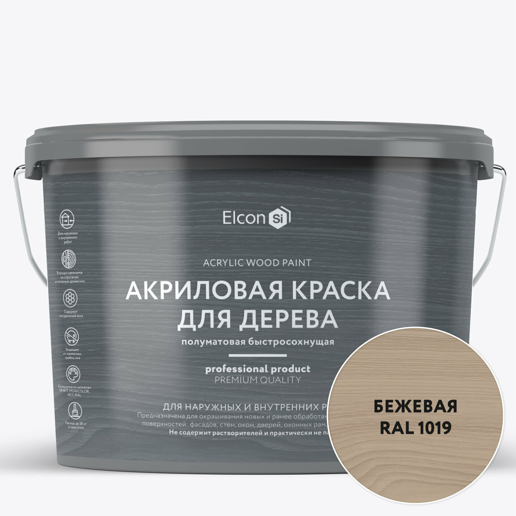 Краска для дерева акриловая Elcon бежевая RAL 1019 9 л