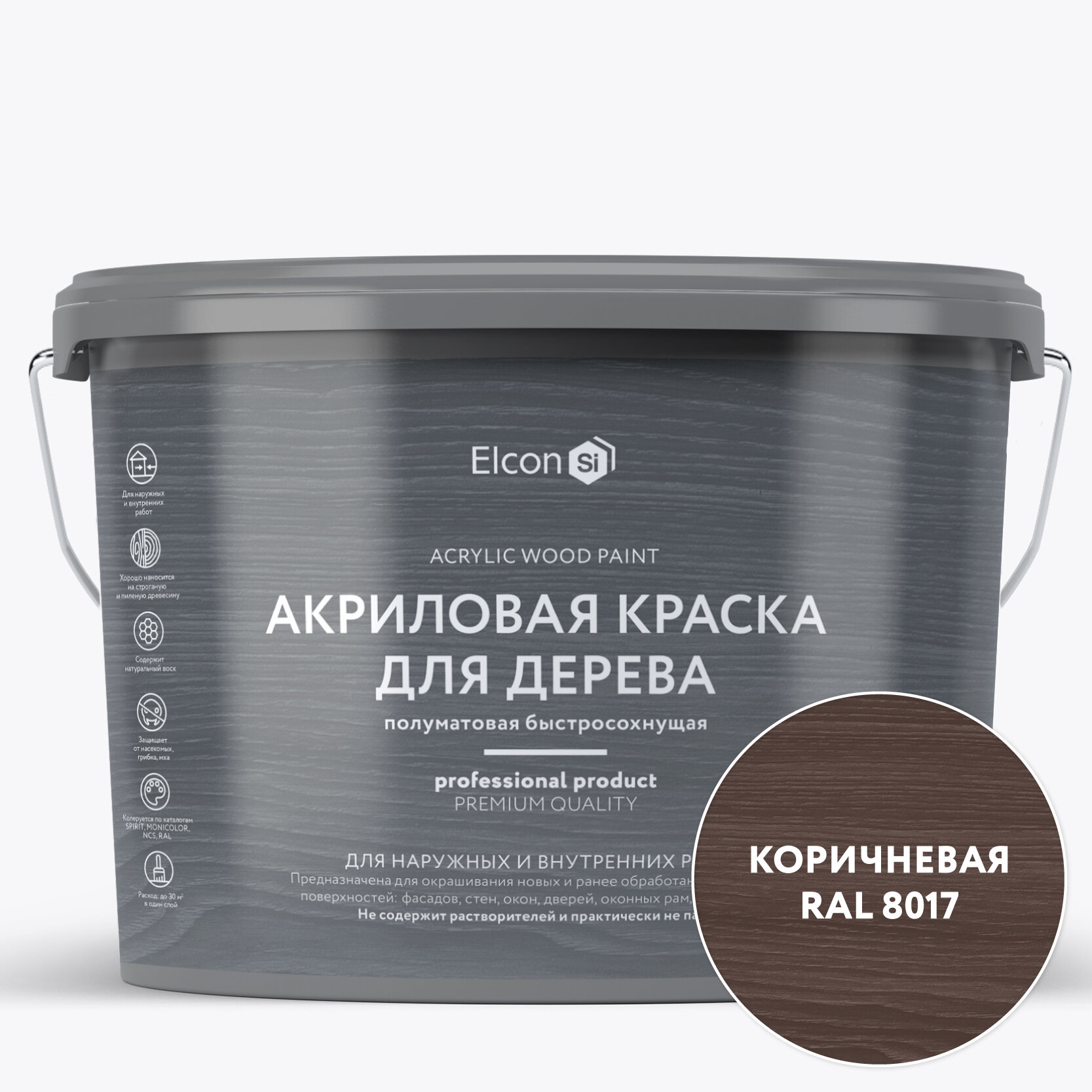 Краска для дерева акриловая Elcon коричневая RAL 8017 9 л