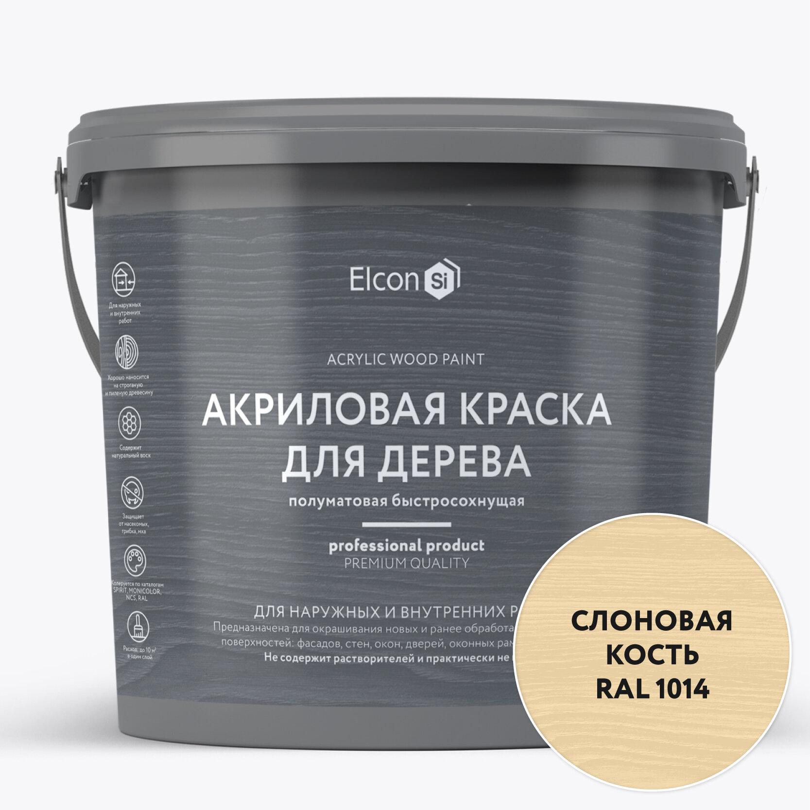 Краска для дерева акриловая Elcon слоновая кость RAL 1014 9 л