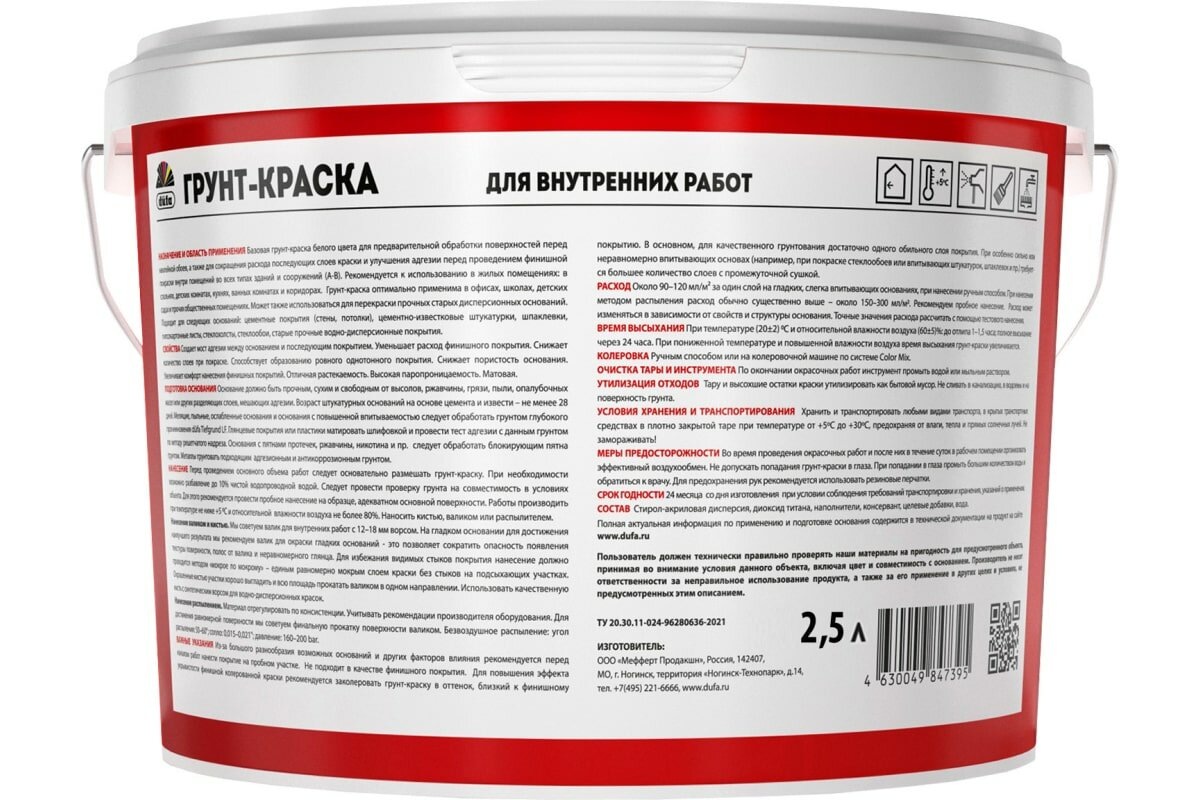 Грунт-краска базовая для внутренних работ белая матовая Dufa (2,5л)