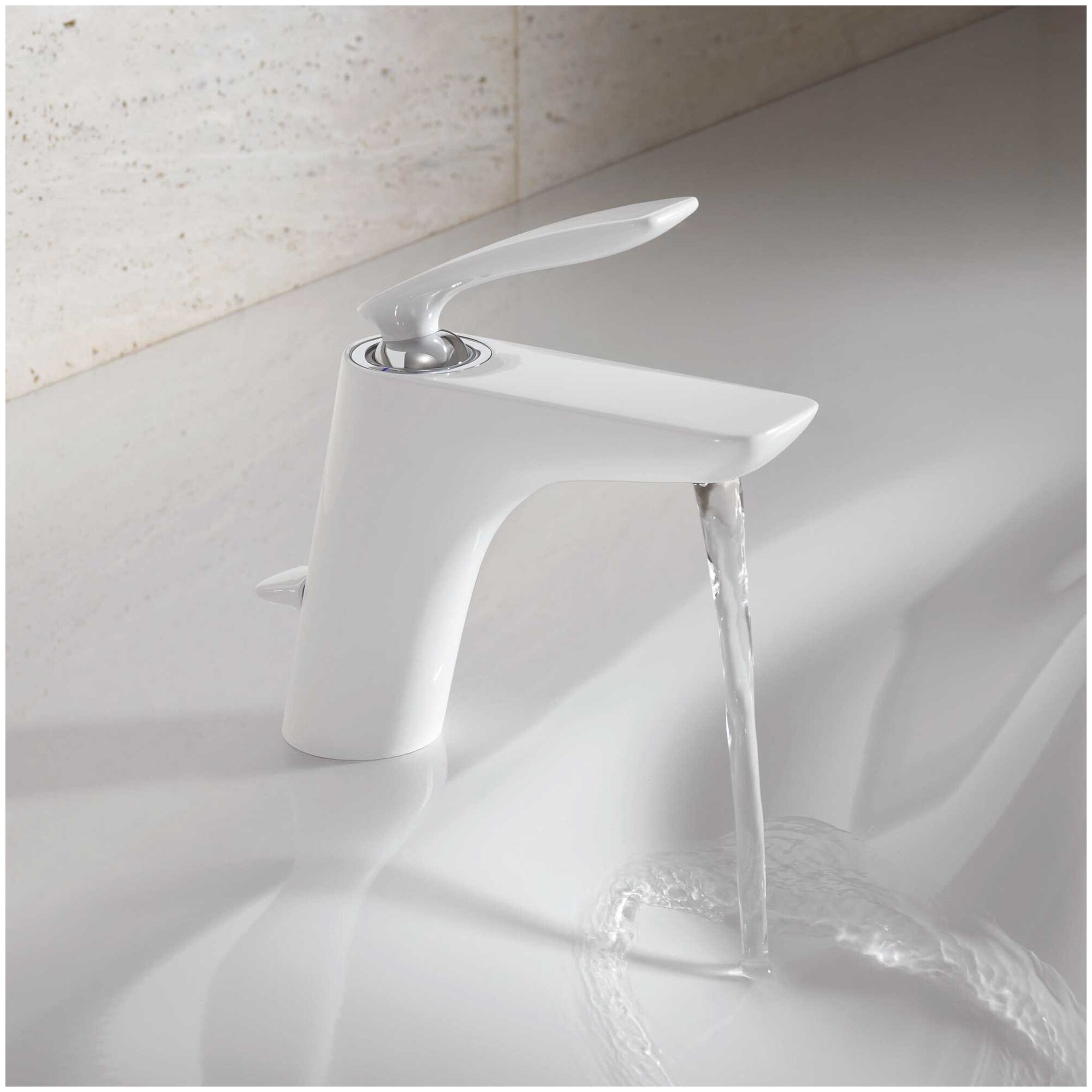 Смеситель для умывальника Kludi Balance, арт. 520239175, неповоротный излив, белый цвет, с донным клапаном, с экономичным расходом воды