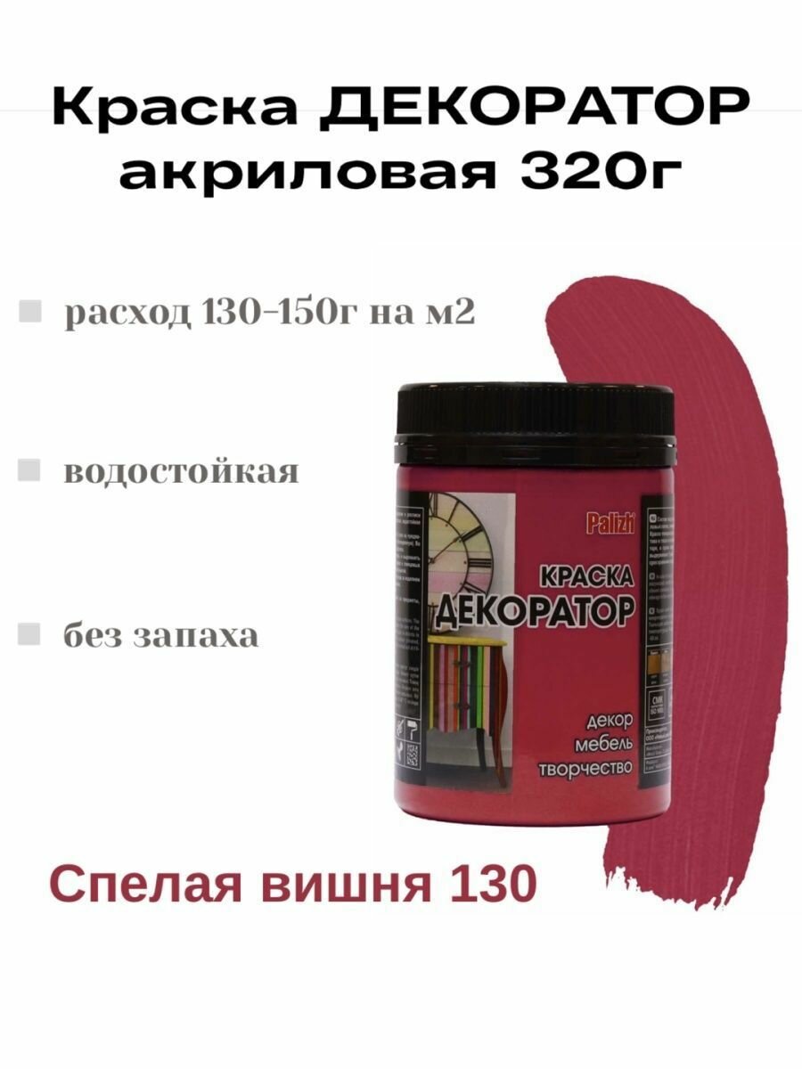 Краска Декоратор акриловая быстросохнущая Palizh Спелая вишня 0,32кг интересное: