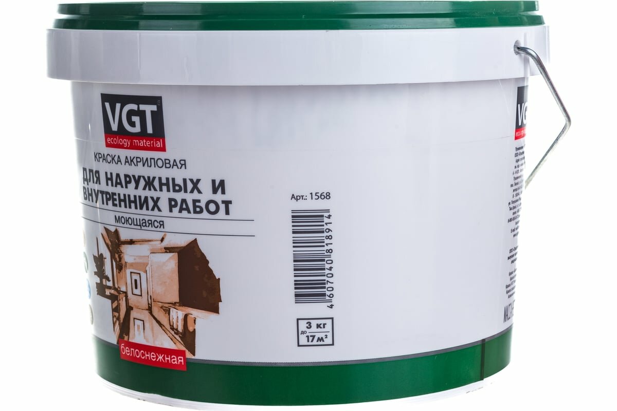 Краска VGT для наружных и внутренних работ, краска акриловая, белоснежная 3 кг