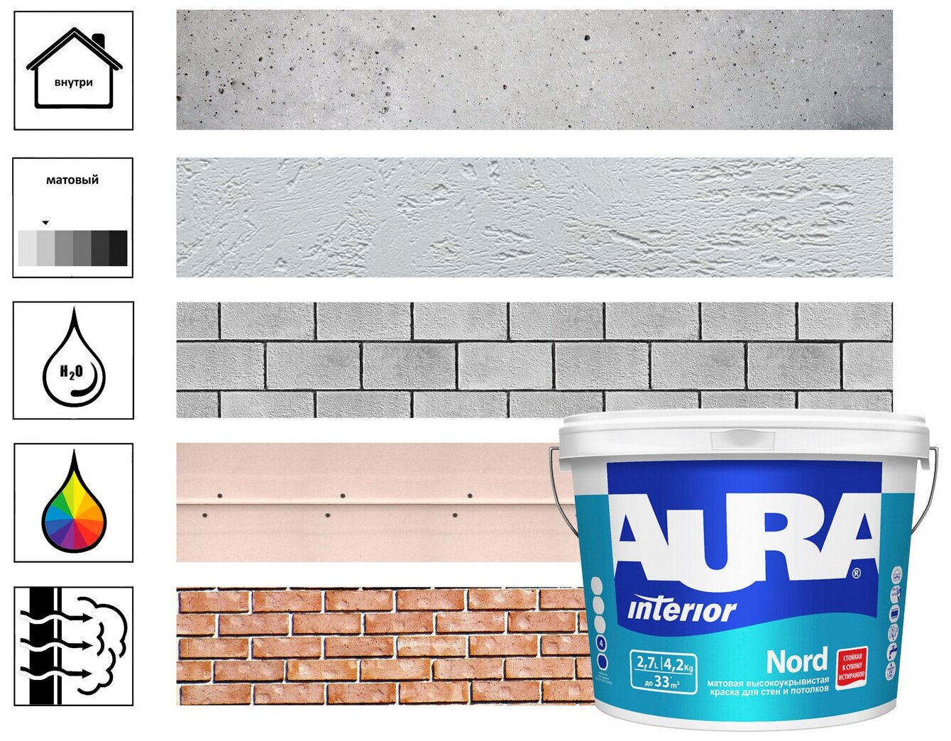 Краска для Стен и Потолков Aura Interior Nord 2.7л Матовая для Детских и Медицинских Учреждений / Аура.