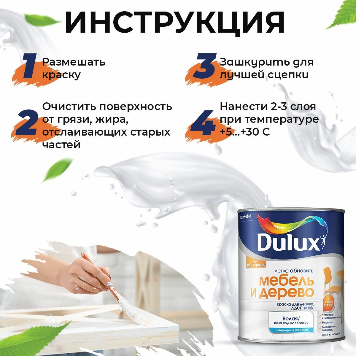 Краска Dulux Мебель и Дерево BW 0,75л интересное: