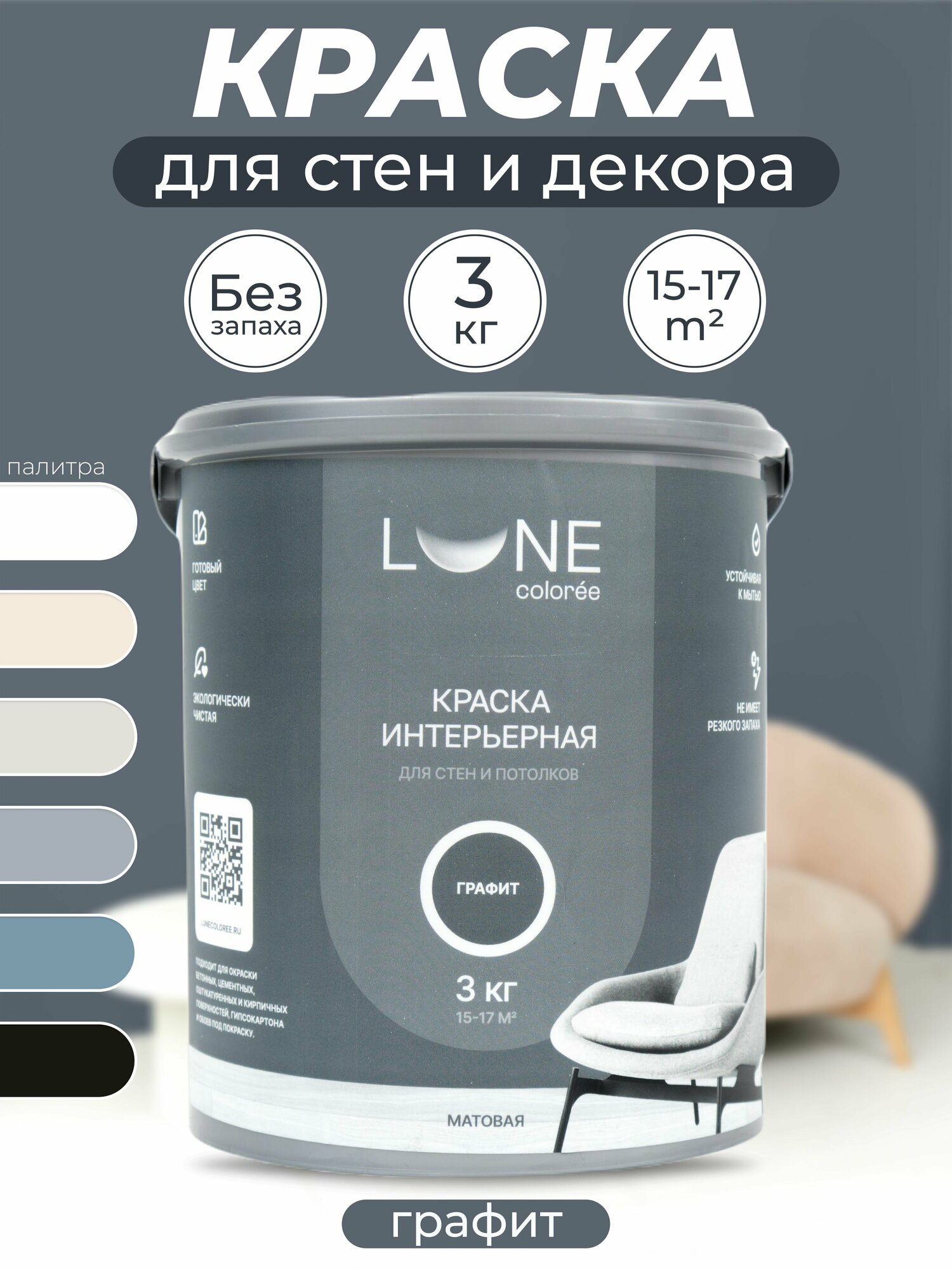 Купить Интерьерная краска для стен и потолков Lune Coloree моющаяся, матовая, графитовый 3кг