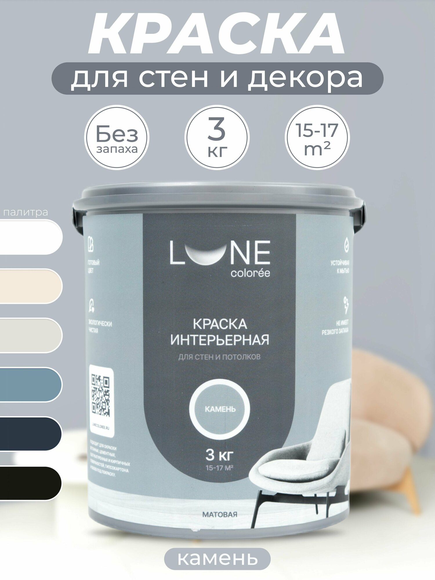 Купить Интерьерная краска для стен и потолков Lune Coloree моющаяся, матовая, камень 3кг
