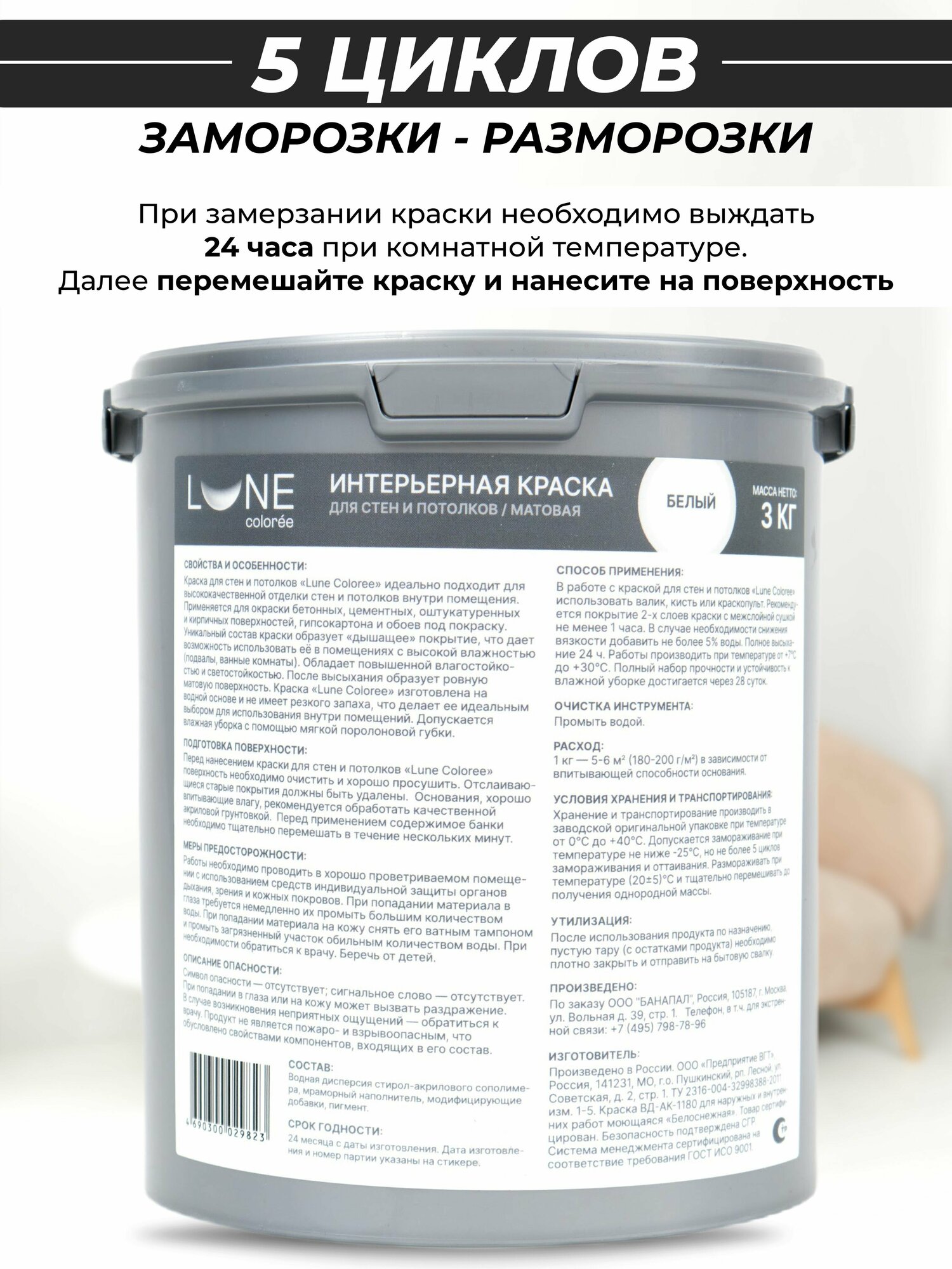 Купить Интерьерная краска для стен и потолков Lune Coloree моющаяся, матовая, белая 3кг