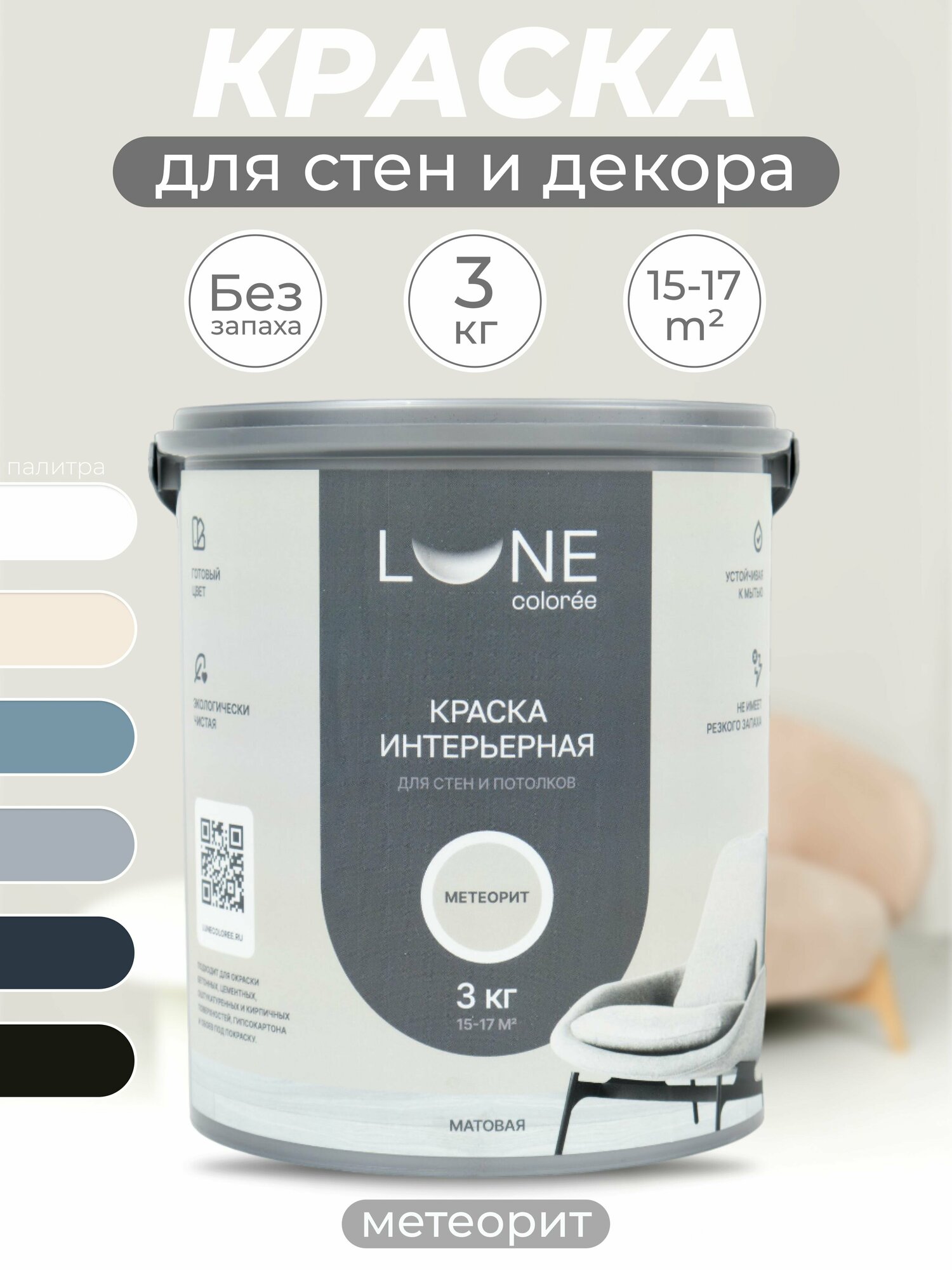 Интерьерная краска для стен и потолков Lune Coloree моющаяся, матовая, графитовый 3кг