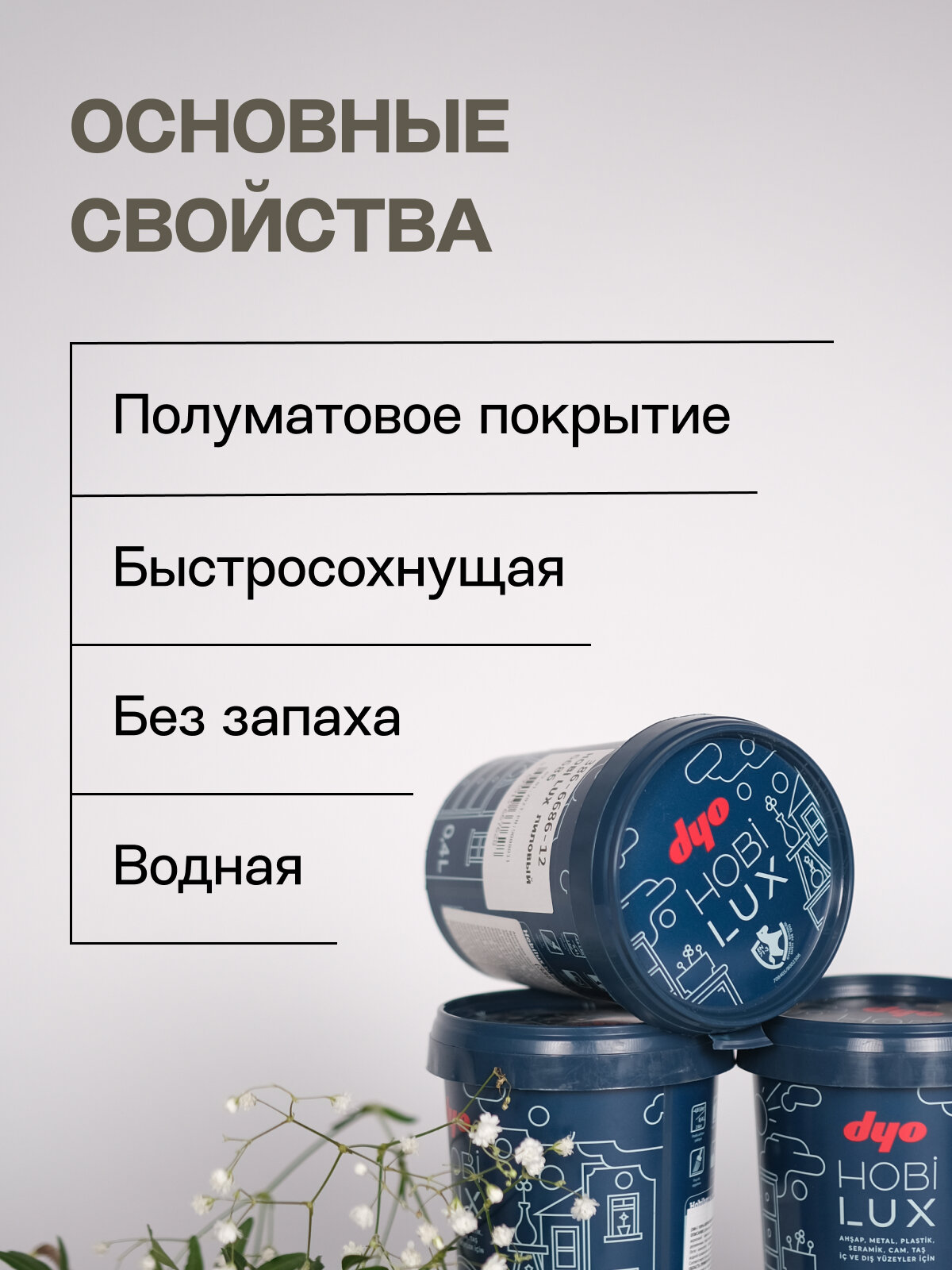 Краска "Dyo" шелковисто-матовая, для любых поверхностей "HOBILUX" цвет белый 0,4л