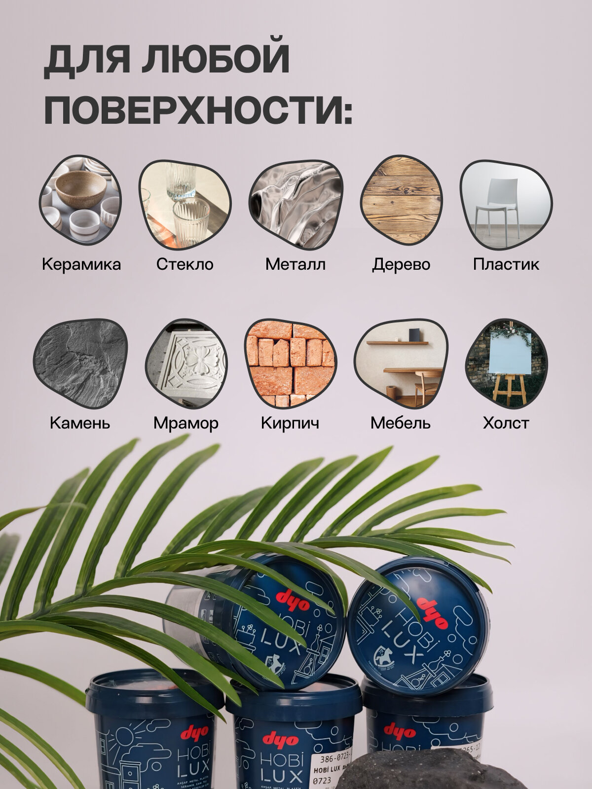 Краска "Dyo" шелковисто-матовая, для любых поверхностей "HOBILUX" цвет лиловый 0,4л