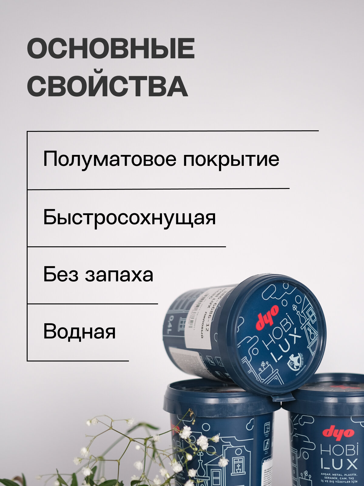Краска "Dyo" шелковисто-матовая, для любых поверхностей "HOBILUX" цвет белый 0,4л