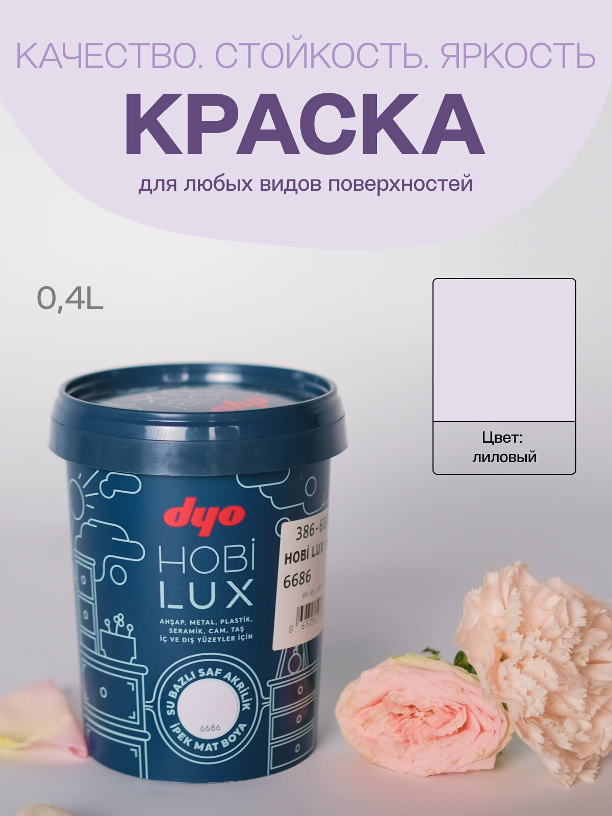Краска "Dyo" шелковисто-матовая, для любых поверхностей "HOBILUX" цвет лиловый 0,4л