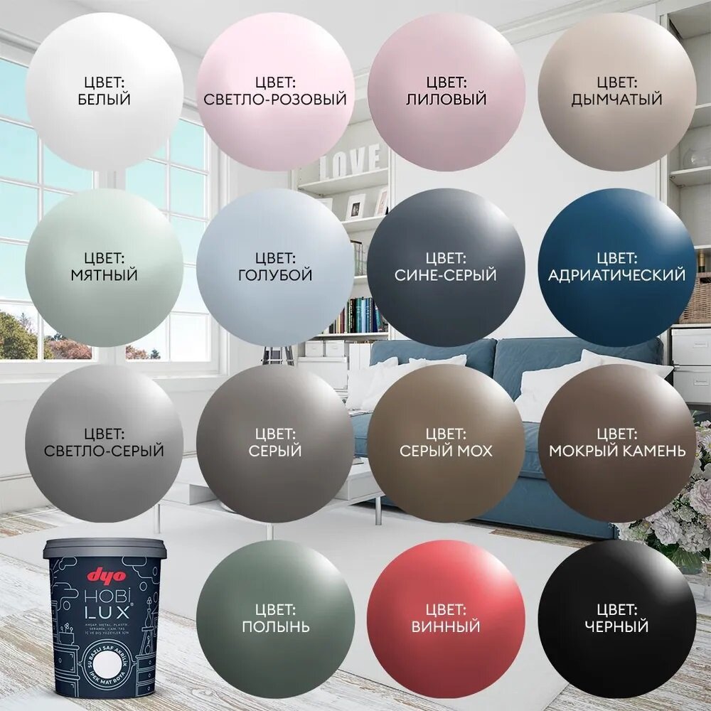 Краска "Dyo" шелковисто-матовая, для любых поверхностей "HOBILUX" цвет серый 0,4л