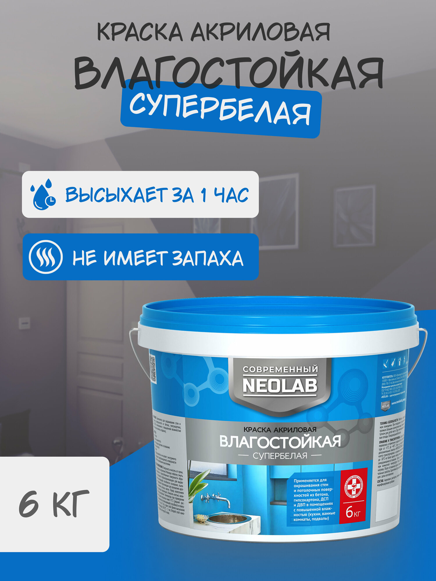 NEOLAB , Краска акриловая супербелая влагостойкая , 6 кг