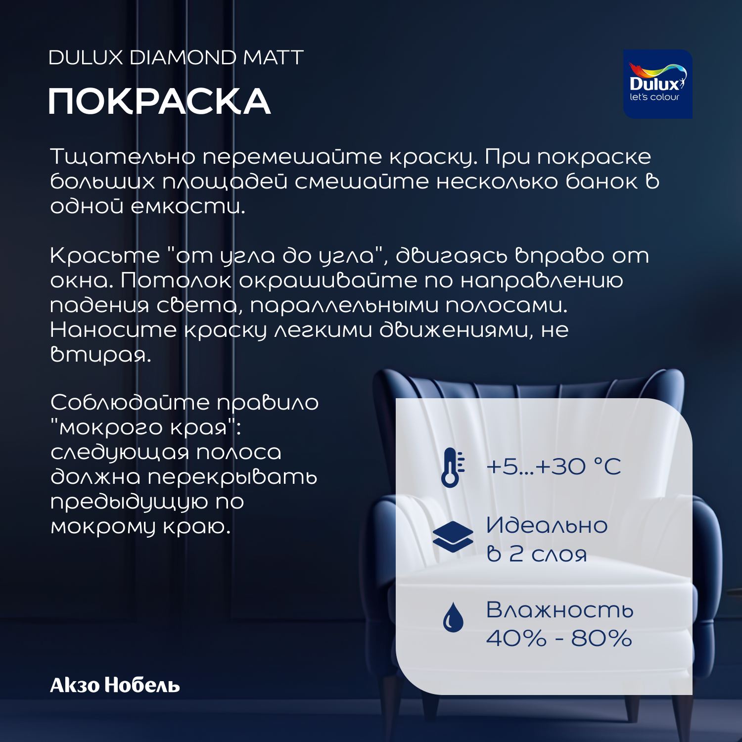 Краска Dulux Diamond алмазная прочность влагостойкая моющаяся матовая белый база BW 2.5 л