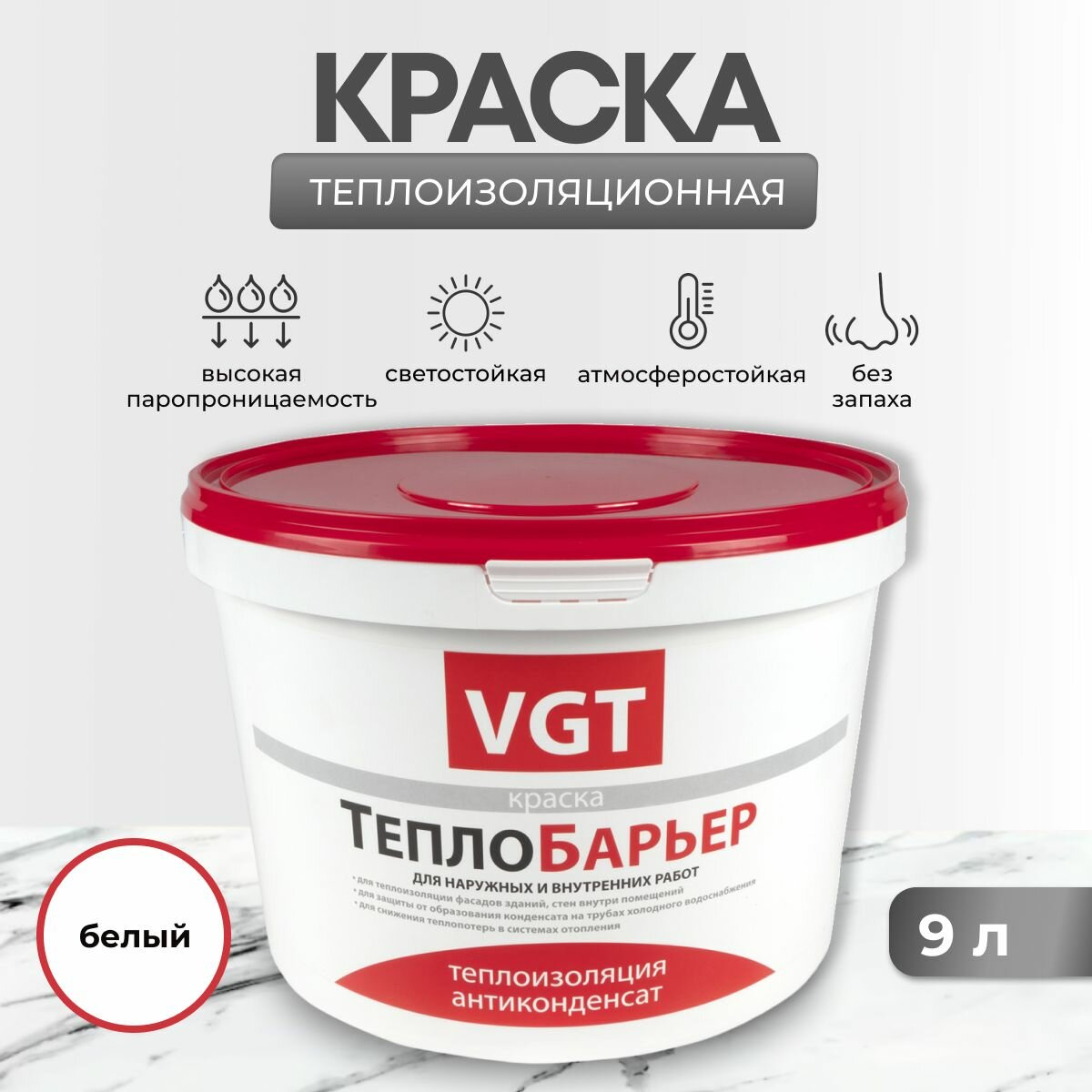 Краска теплоизоляционная VGT Теплобарьер ВД-АК-1180, 9 л интересное: