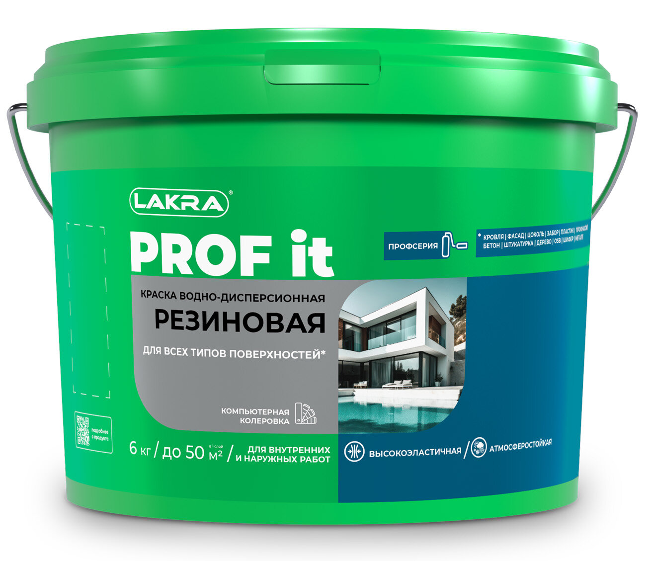 краска акриловая лакра Prof it резиновая для всех типов поверхностей белая 6кг, арт.9591030