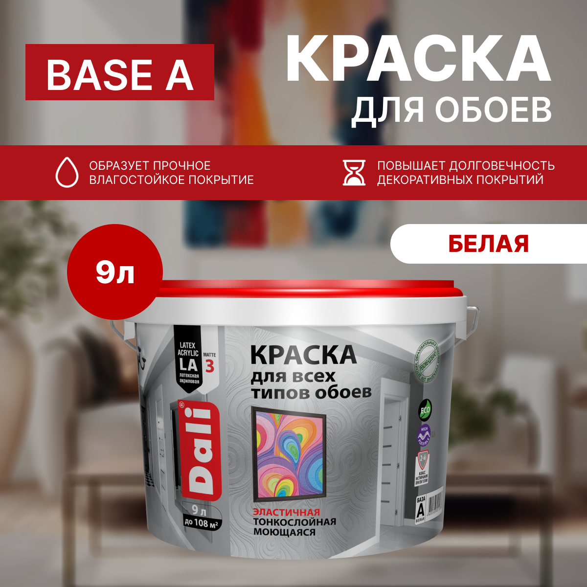 Купить Краска для обоев Dali 9 л, база А, белый