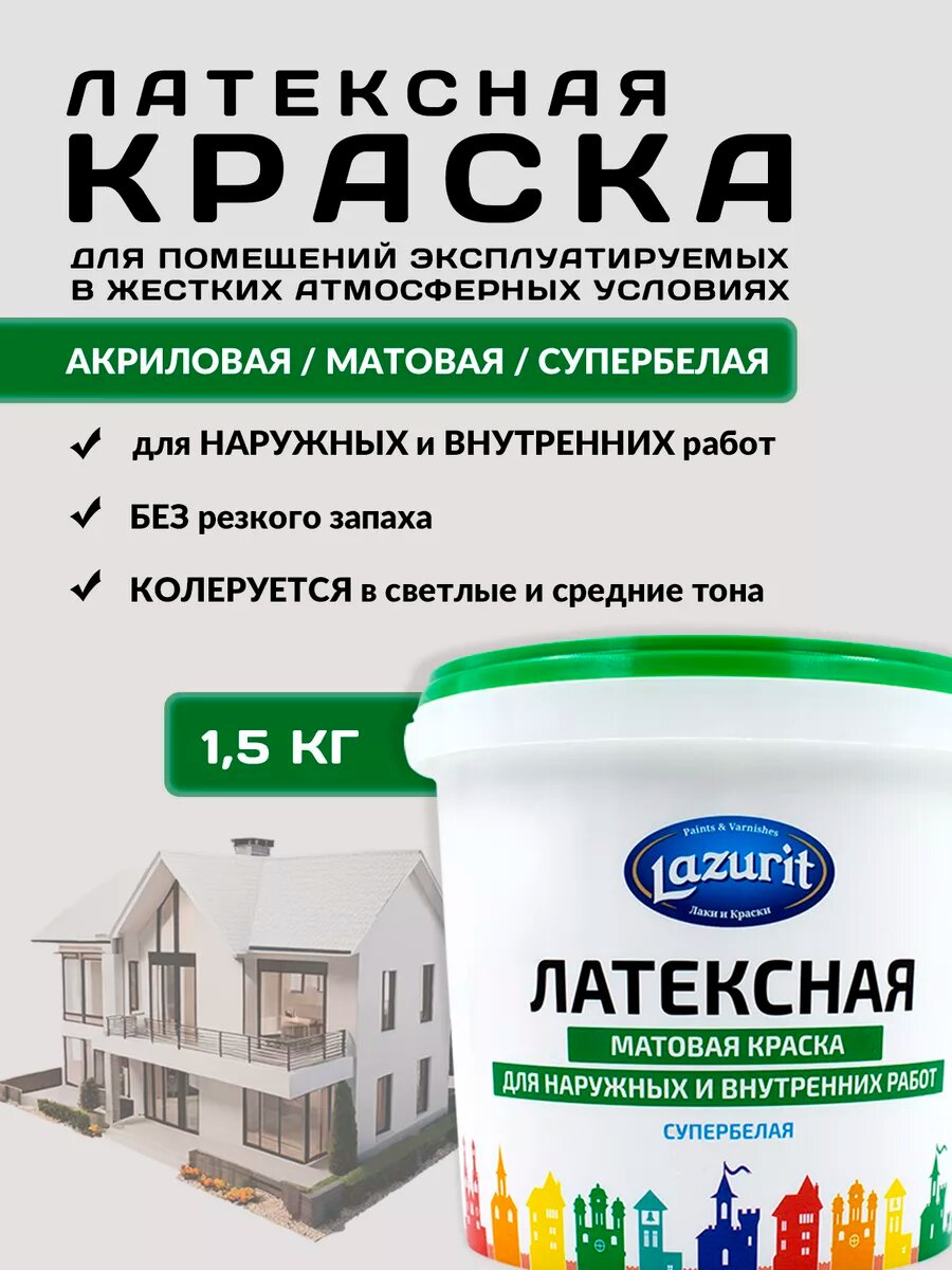 LAZURIT Латексная моющаяся матовая краска 1,5 кг интересное: