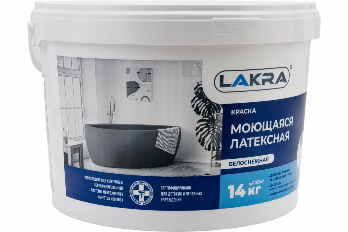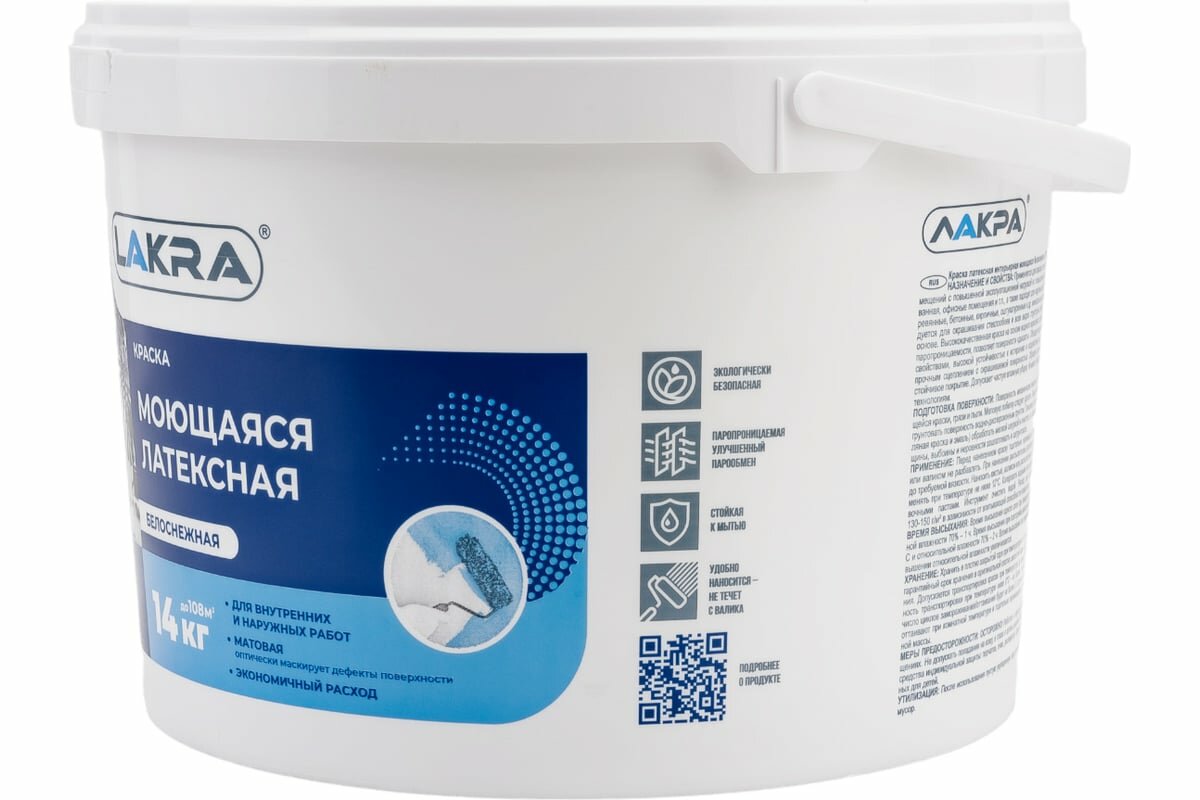 Краска Лакра моющаяся латексная Белоснежная 14кг интересное: