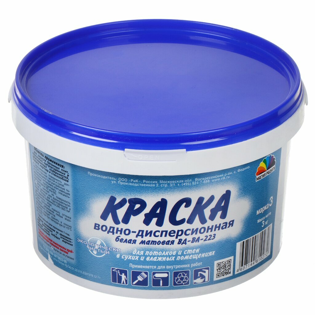 Купить Краска воднодисперсионная, Магия радуги, М-3, универсальная, моющаяся, матовая, 3 кг