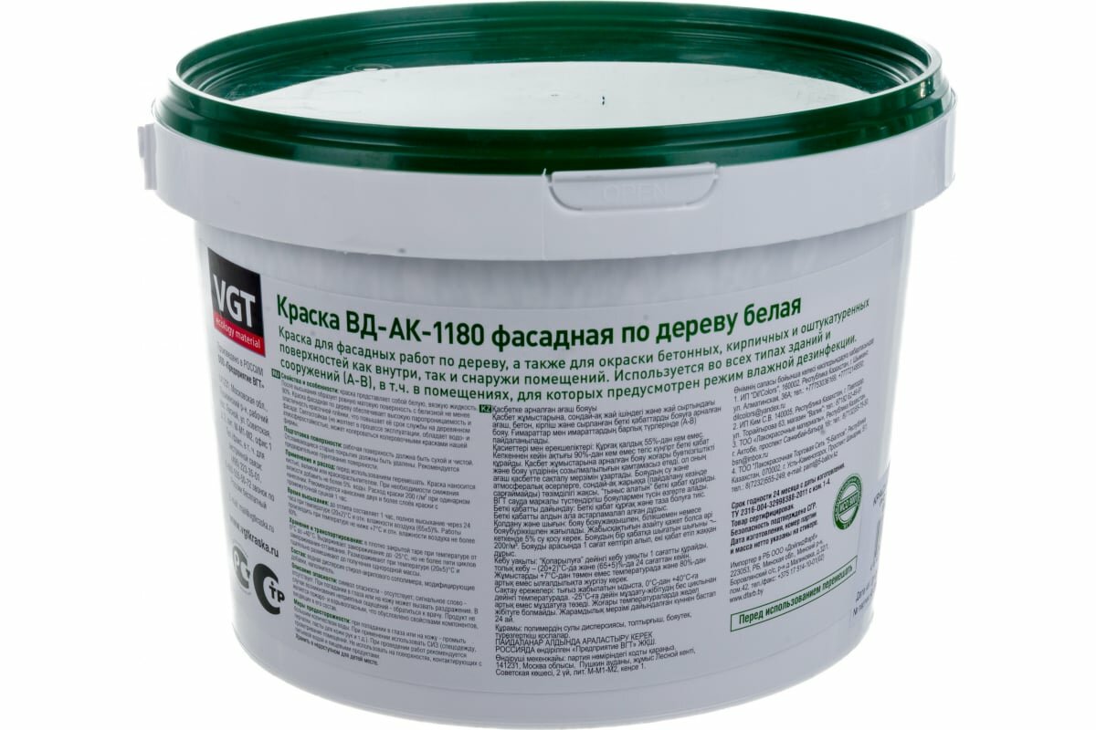 VGT ВД-АК-1180 краска фасадная ПО дереву акриловая, белая, матовая (7кг) интересное: