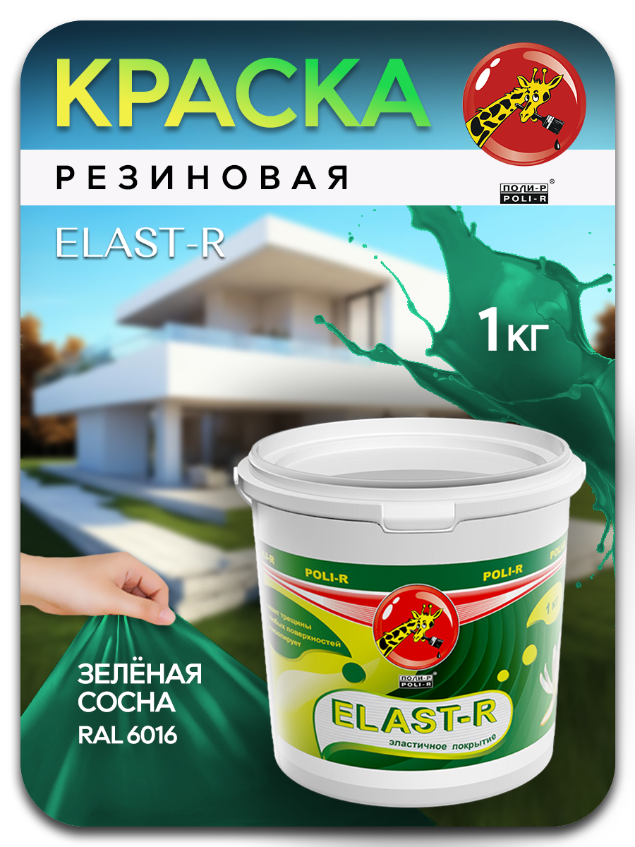 Эластичная краска Elast-R, Зеленая сосна RAL 6016 Сверхстойкое, 6000г