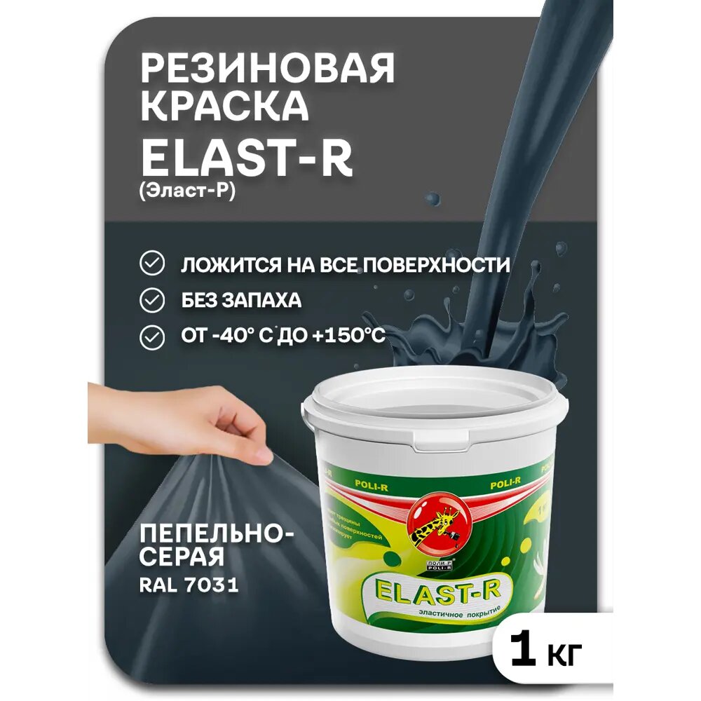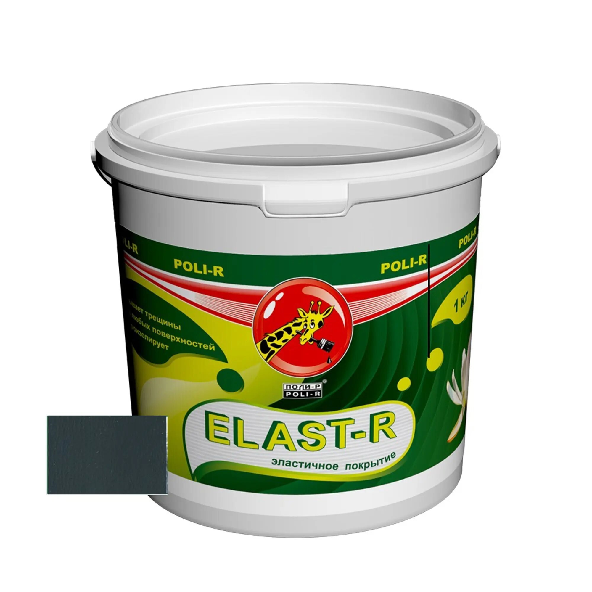 Резиновая Краска Эластичная Polir-R Elast-R 1кг Пепельно-Серый RAL 7031, для Ванных Комнат, Влажных Помещений, Потолков, Стен, Заборов, Фасадов, Крыш.