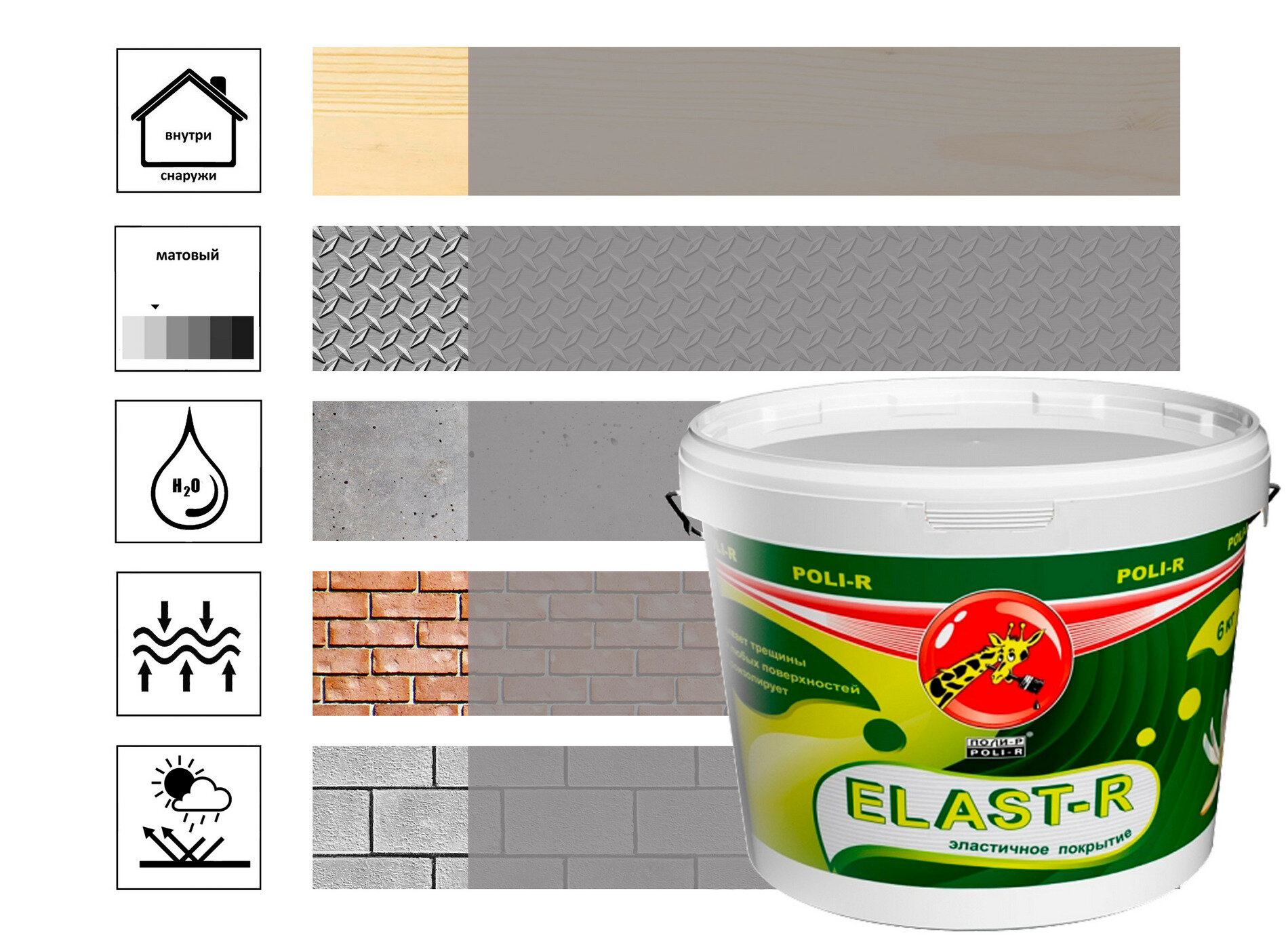 Краска резиновая Poli-Elast-R - эластичная акриловая матовая краска для всех поверхностей