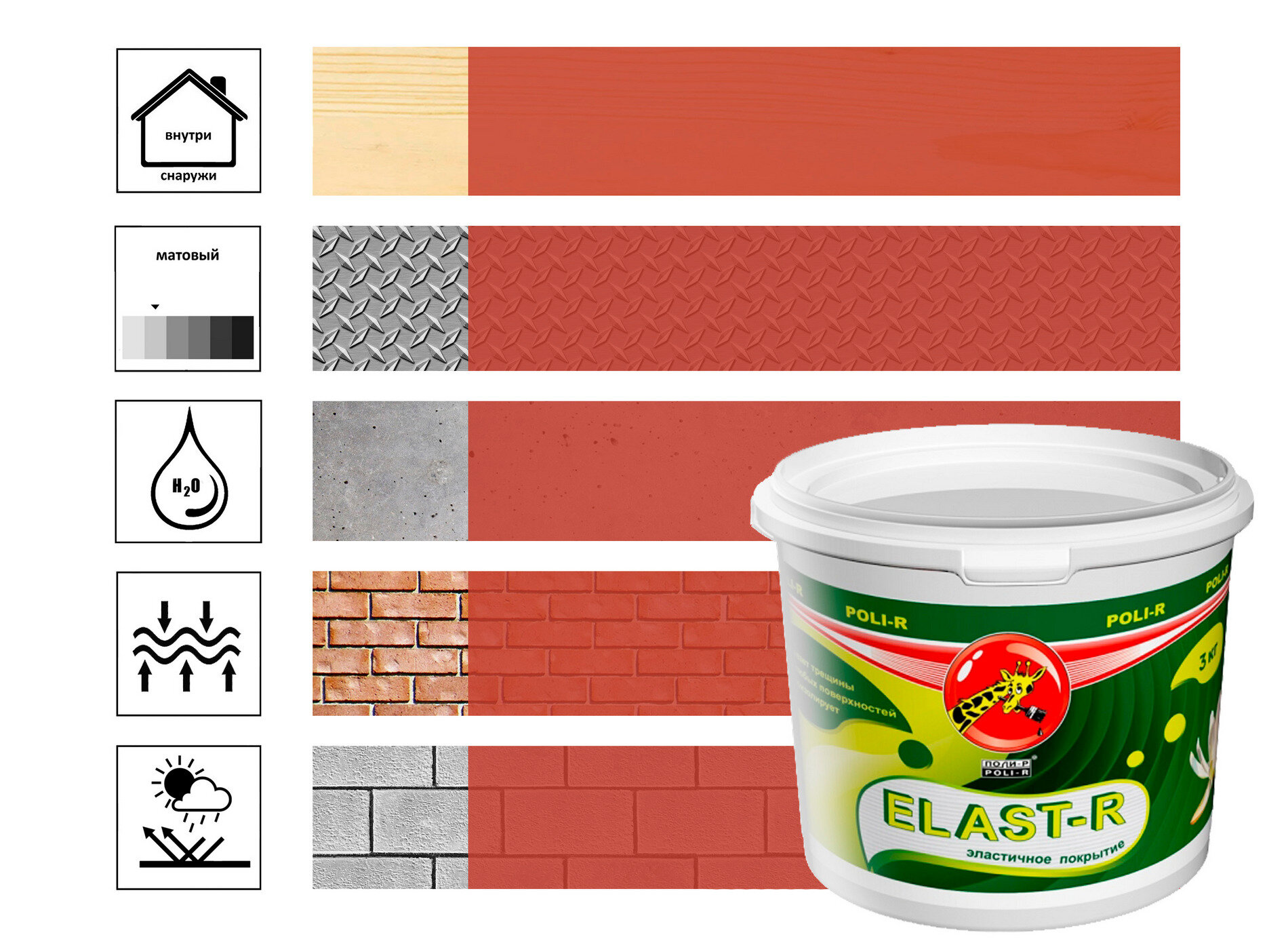 Эластичная краска Elast-R, красно- коричневый Сверхстойкое, 6 кг