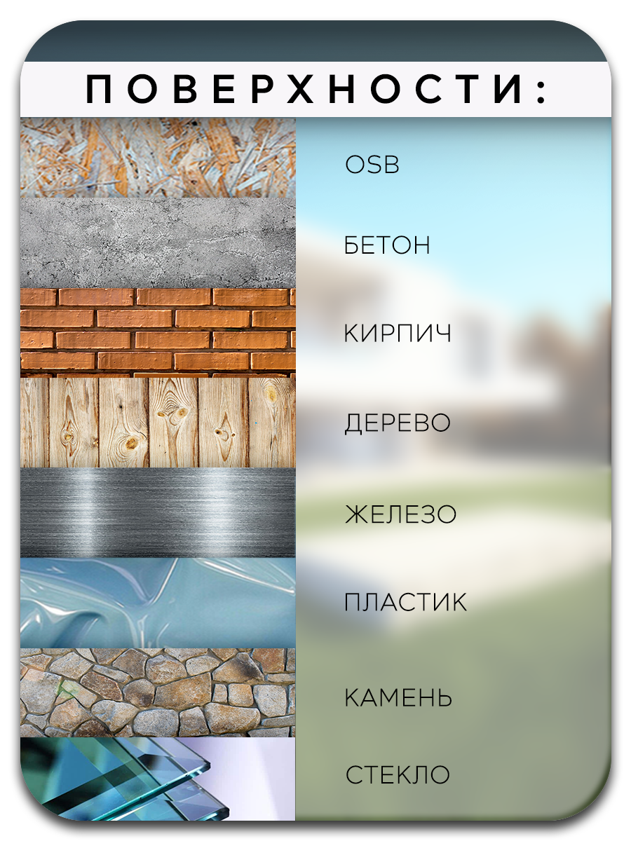 | Область применения | для бассейнов / для влажных помещений / для гаражей / для дверей / для кровли / для мебели / для окон / для перегородок / для пола / для потолков / для профнастила и металлочерепицы / для стен / для фасадов / для цоколя / универсальная |