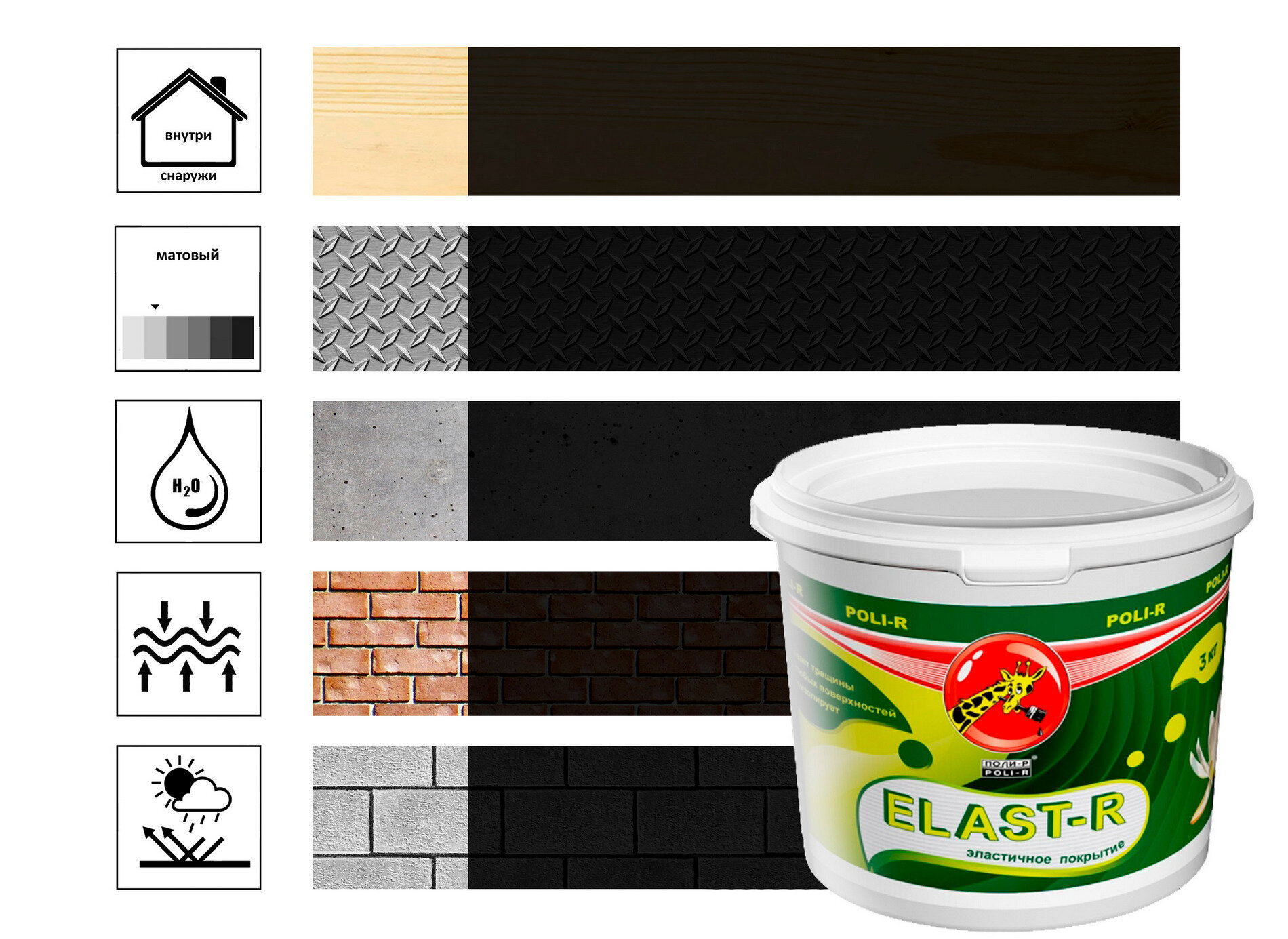 Краска резиновая Poli-Elast-R - эластичная акриловая матовая краска для всех поверхностей