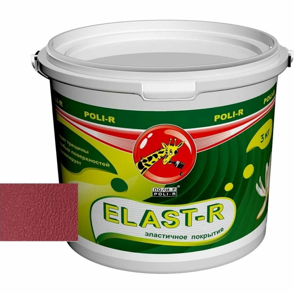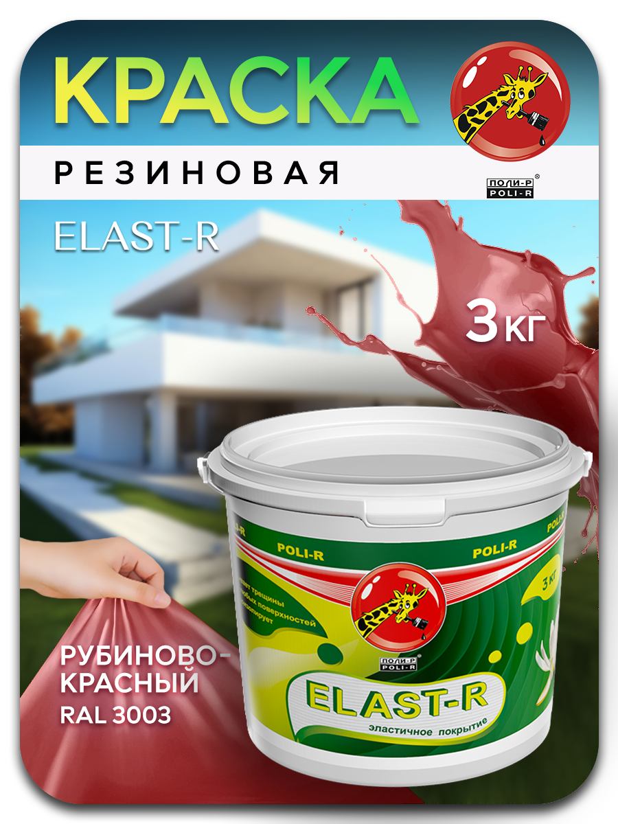 Резиновая Краска Эластичная Polir-R Elast-R 3кг Рубиновый Красный RAL 3003 для Ванных Комнат, Влажных Помещений, Потолков, Стен, Заборов, Фасадов, Крыш.