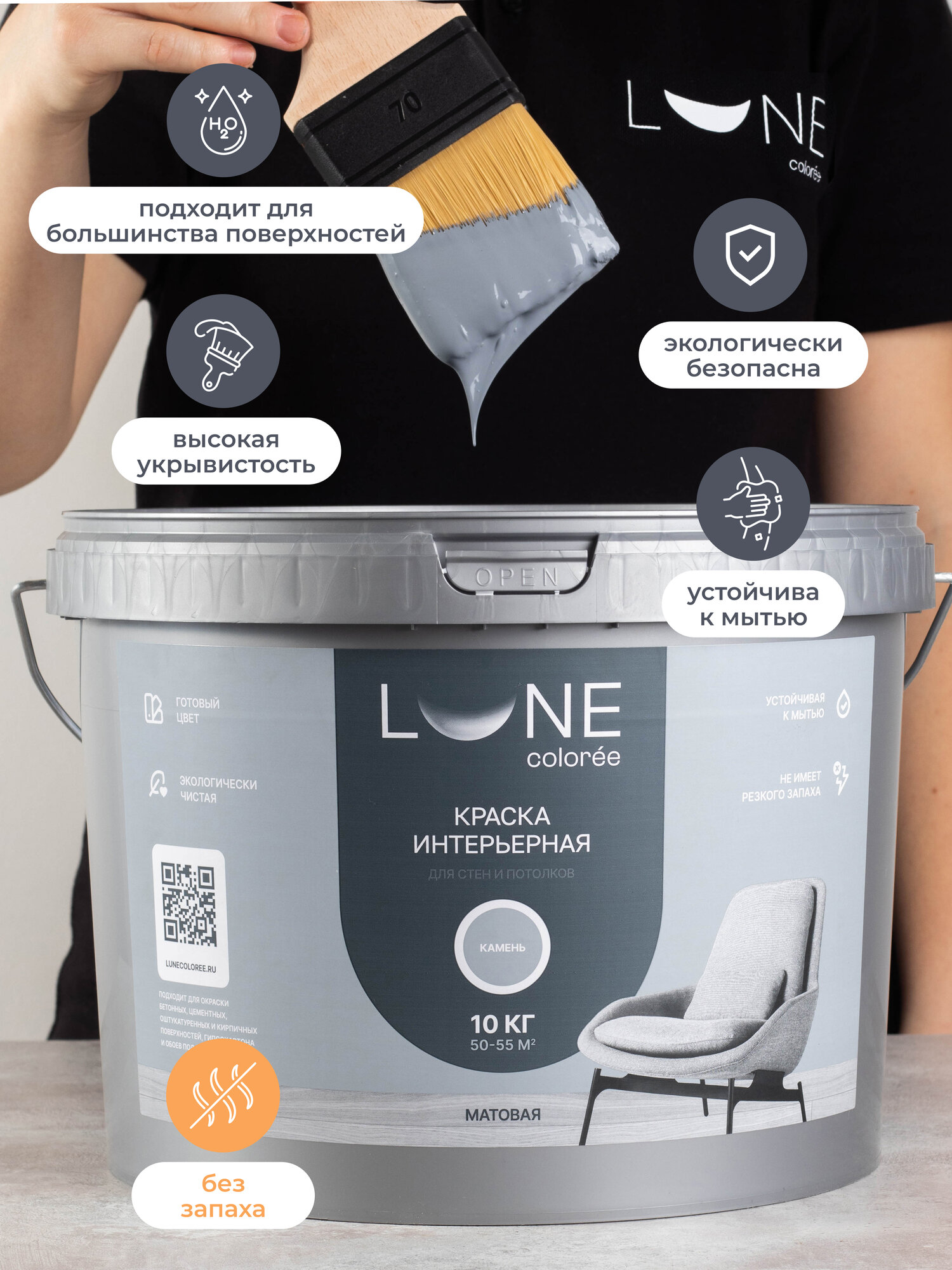 Интерьерная краска для стен и потолков Lune Coloree моющаяся, матовая, графитовый 3кг