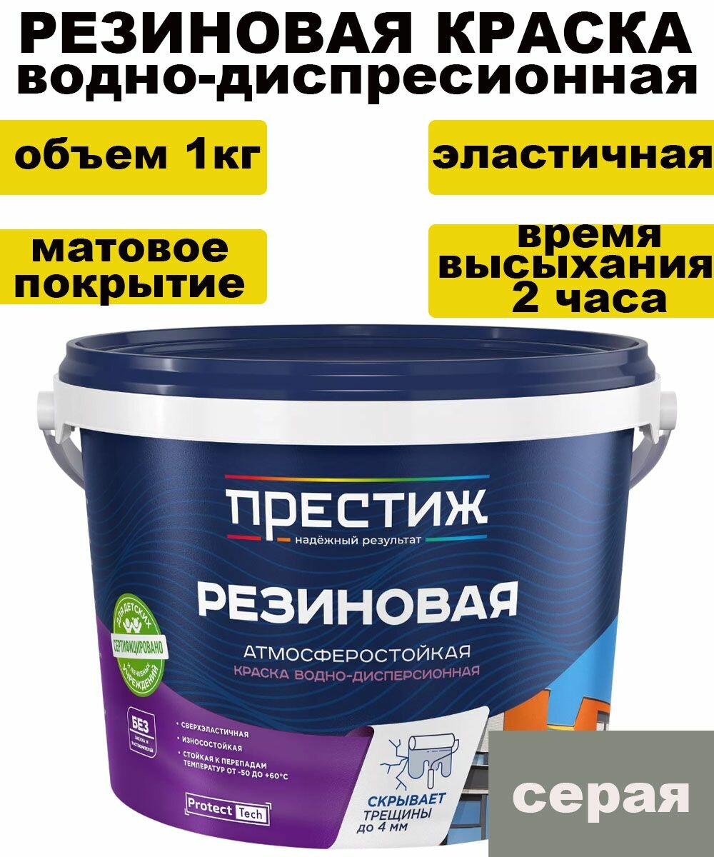Купить Краска резиновая водно-дисперсионная Престиж, матовая, 1 кг, серая